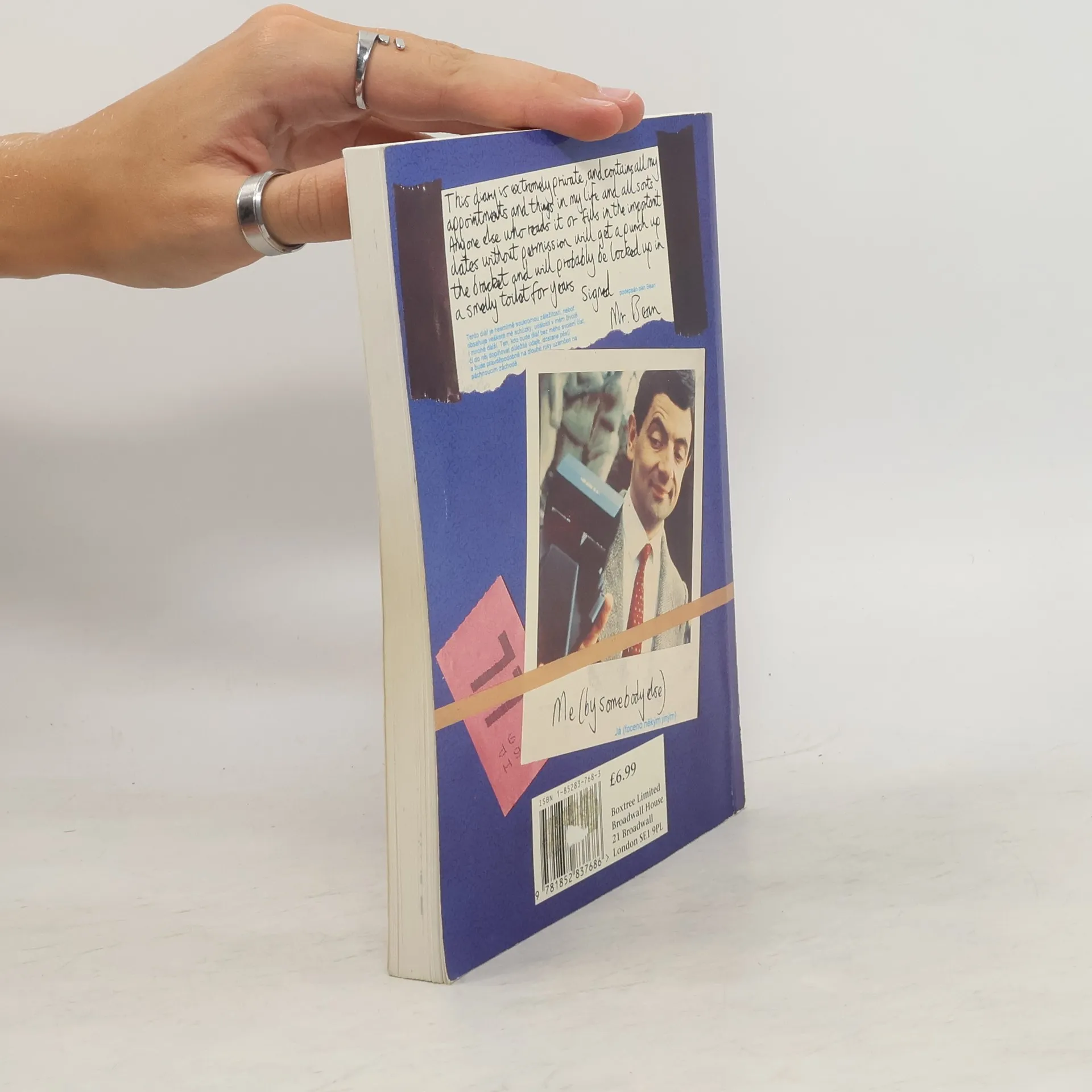This diary is extremely private, and contains all my appointments and things in my life and all sorts. Anyone else who reads it or fills in the important dates without permission will get a punch up the bracket and will probably be locked up in a smelly toilet for years signed Mr. Bean