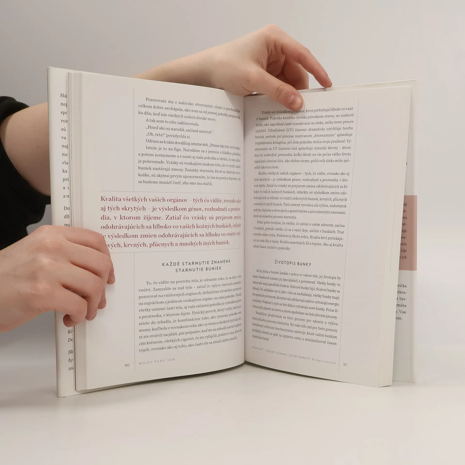 Slávna herečka Cameron Diaz pokračuje po úspešnej motivačnej knihe Miluj svoje telo dielom, ktoré ponúka návod, ako sa prirodzeným spôsobom vyrovnať so starnutím, pričom dáva praktické rady na udržanie si pružného a zdravého tela. Zameriava sa na tabu spoločnosti, ktorým je starnutie ženského tela. V tejto knihe zoznamuje čitateľa s výsledkami najnovších vedeckých výskumov o tom, ako a prečo starneme. Spája vedecké poznatky medicínskych expertov s vlastnými názormi a skúsenosťami. Cameron Diaz skúma, čo nás história, biológia a hnutie pre ženské zdravie môžu naučiť o optimalizácii zdravia žien v strednom veku. Od porozumenia rôznym biologickým rozdielom v oblasti starnutia až po to, ako meditácia lieči a prečo sú láska, priateľstvo a smiech najdôležitejšími prvkami zdravia. V knihe od svetoznámej herečky nájdete holistický názor na to, ako ženské telo starne a čo môžeme spraviť, aby sme starli čo najlepšie.