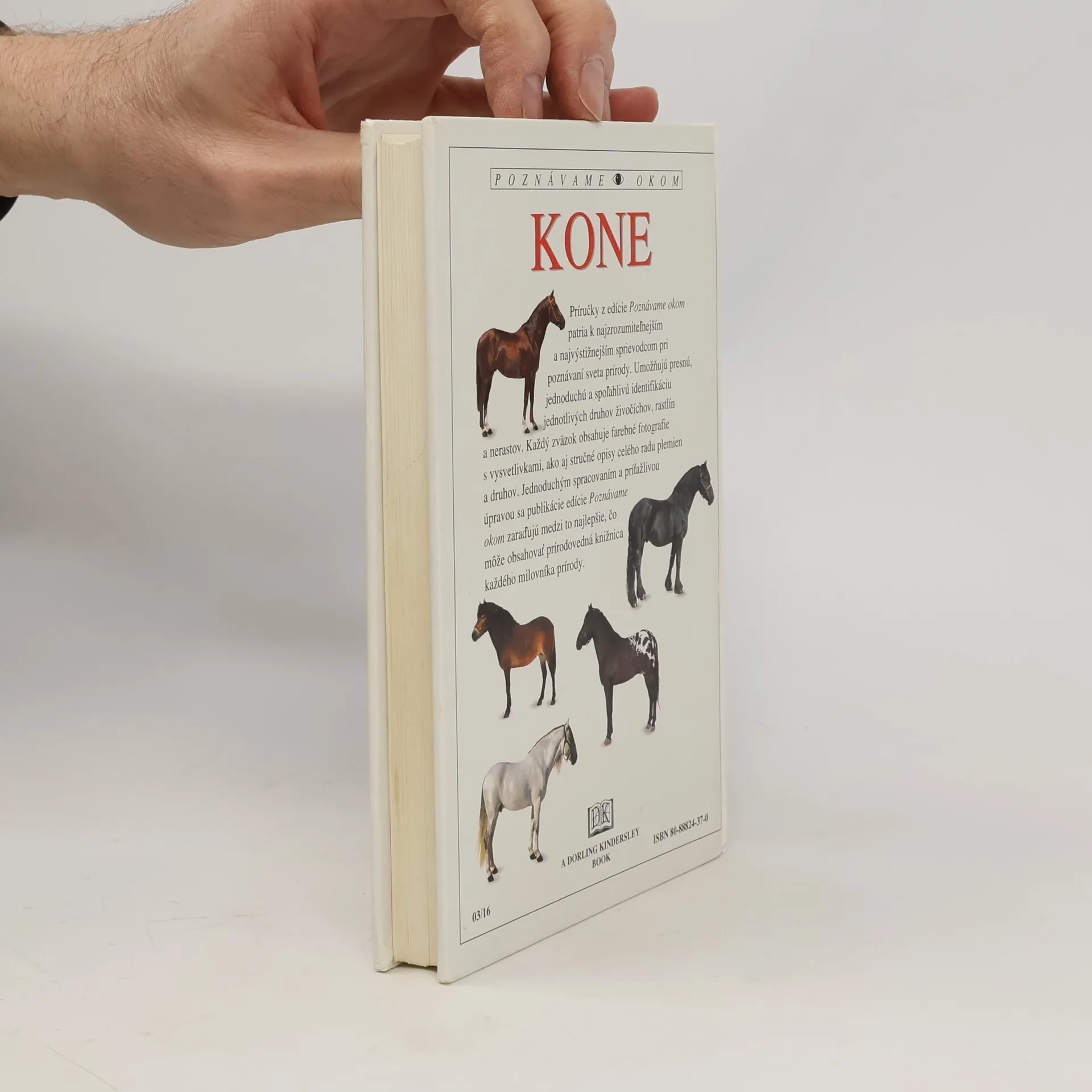 Obrazový sprievodca po viac ako 100 plemenách koní z celého sveta. Edícia Poznávame okom. Pôsobivým textom, dokonalými fotografiami a systematickým prístupom k problematike sa táto publikácia stáva najobsažnejším a pritom najstručnejším sprievodcom po plemenách koní z celého sveta. Obsahuje vyše 250 farebných fotografií viac ako 100 plemien a jej poslaním je pomôcť všetkým záujemcom pri rýchlej identifikácii hlavných charakteristických znakov plemien koní. Prvé vydanie.