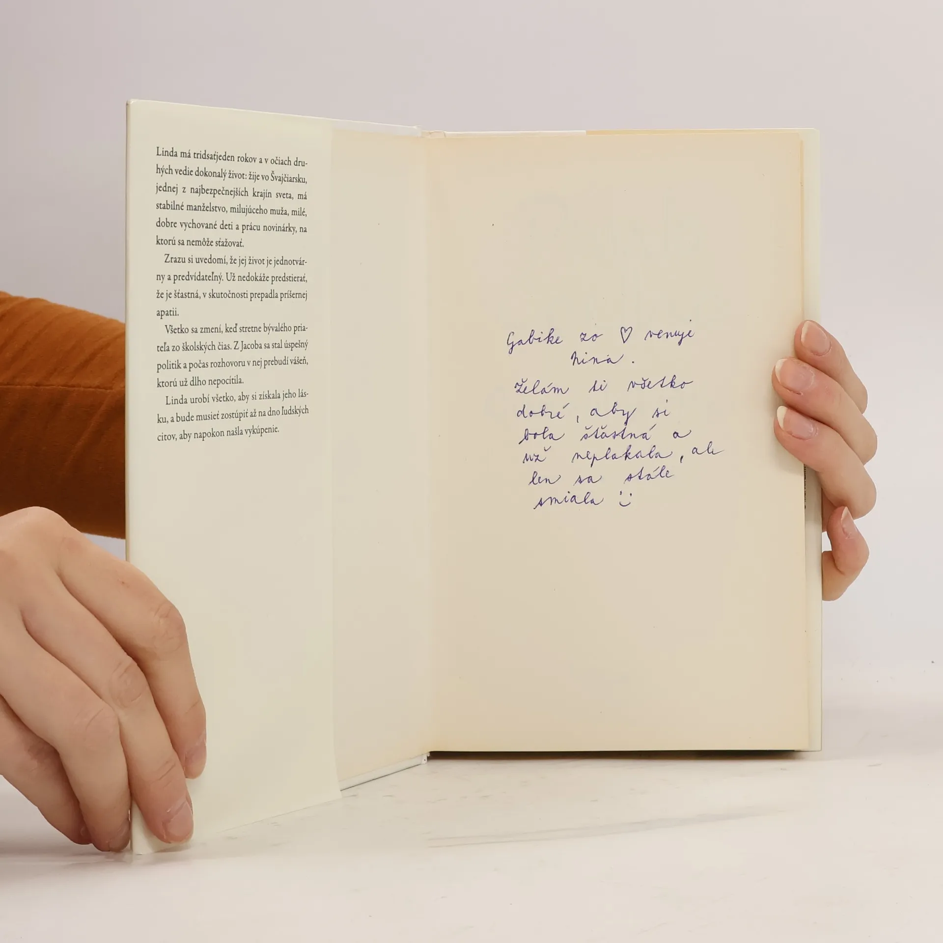 Linda má tridsaťjeden rokov a v očiach druhých vedie dokonalý život: žije vo Švajčiarsku, jednej z najbezpečnejších krajín sveta, má stabilné manželstvo, milujúceho muža, milé, dobre vychované deti a prácu novinárky, na ktorú sa nemôže sťažovať. Zrazu si uvedomí, že jej život je jednotvárny a predvídateľný. Už nedokáže predstierať, že je šťastná, v skutočnosti prepadla príšernej apatii. Všetko sa zmení, keď stretne bývalého priateľa zo školských čias. Z Jacoba sa stal úspešný politik a počas rozhovoru v nej prebudí vášeň, ktorú už dlho nepocítila. Linda urobí všetko, aby si získala jeho lásku, a bude musieť zostúpiť až na dno ľudských citov, aby napokon našla vykúpenie.