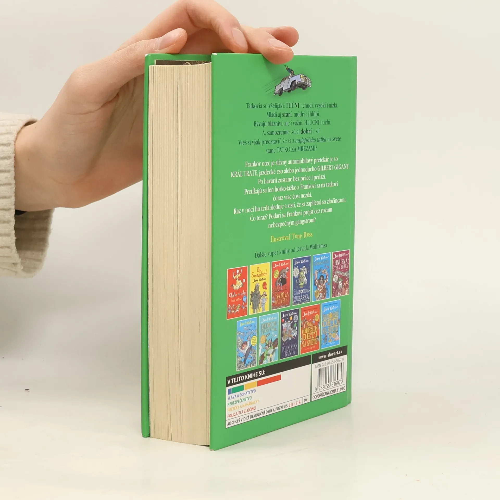 Svetoznámy britský komik a autor detských bestsellerov David Walliams pre vás aj tentoraz napísal akčnú pútavú knihu, ktorú nepustíte z ruky, kým ju nedočítate. Frankov otec je slávny automobilový pretekár. Po ťažkej havárii však už nemôže jazdiť, a tak odrazu zostane bez práce i bez peňazí. Frankova mama mu nepomôže, naopak, opustí otca aj so synom. Tí sa len horko-ťažko pretĺkajú. Jeden pre druhého sú všetkým. Frankovi sa však čoraz viac na ockovi čosi nezdá. Raz v noci ho teda sleduje. Vysvitne, že sa zaplietol s gangstrami. Jeho ocko predsa nie je zlý! Frank ho má najradšej na svete a chce mu pomôcť. Podarí sa mu prejsť cez rozum zločineckej bande? Že neviete? Tak si to prečítajte!