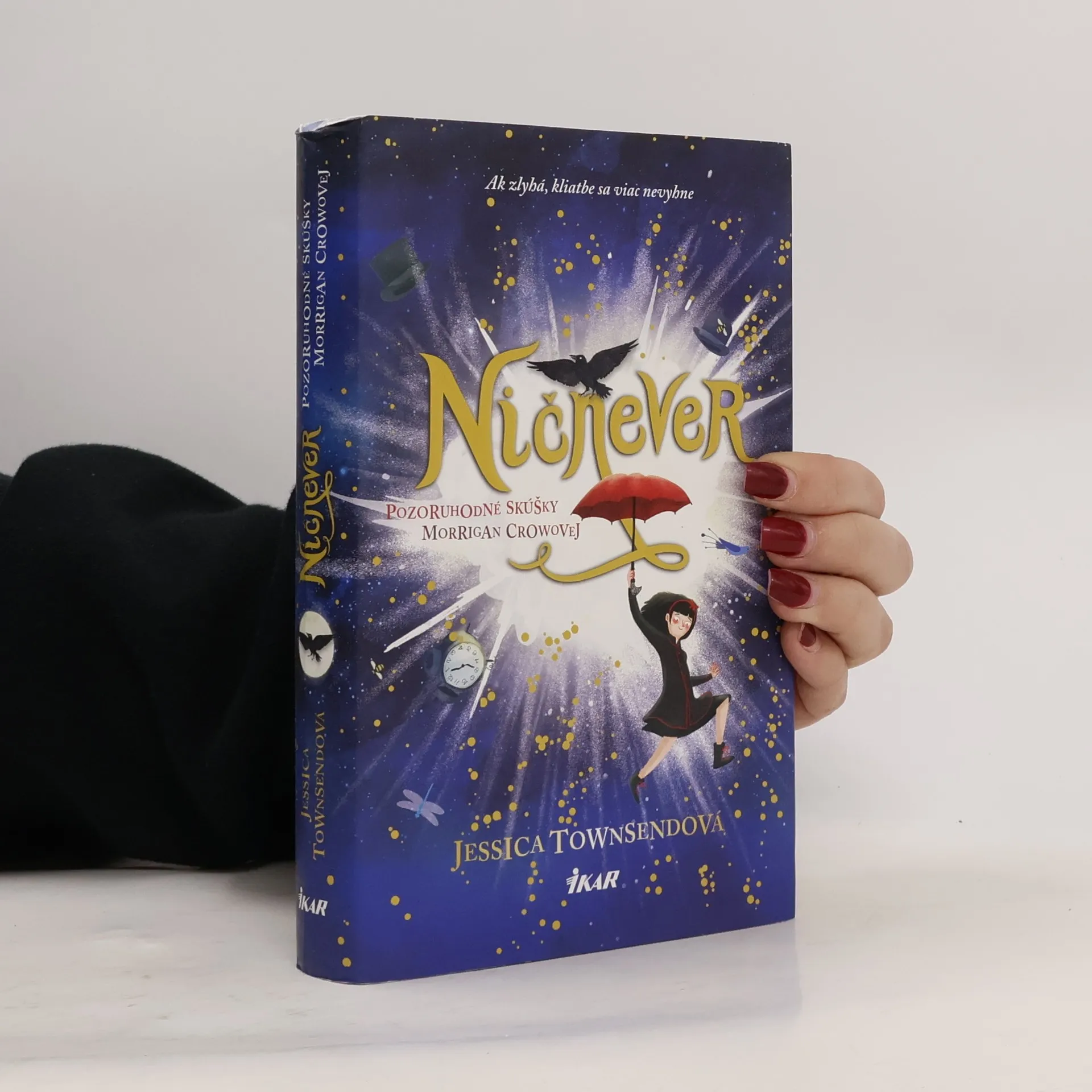 Nad Morrigan Crowovou visí kliatba. Narodila sa v deň Zvečerenia, a preto ju obviňujú zo všetkého zlého, čo sa stalo, od krupobitia po infarkty. Čo je však najhoršie, podľa kliatby je odsúdená na záhubu a zomrie o polnoci po dovŕšení jedenásteho roku života. Kým Morrigan odovzdane čaká na svoj osud, objaví sa pozoruhodný neznámy muž Jupiter North. Unesie ju do tajného magického mesta zvaného Ničnever, čím ju zachráni pred prenasledovateľmi – tieňovými jazdcami a poľovníckymi psami z čierneho dymu. Morrigan sa ešte dozvie, že Jupiter si ju vybral ako uchádzačku o miesto v najprestížnejšej organizácii v meste – v Spolku výnimočných. Aby doň vstúpila, musí podstúpiť štyri ťažké a nebezpečné skúšky. Súperiť pritom bude so stovkami iných detí, pričom každé sa pýši extrémnym nadaním. Morrigan však žiaden talent nemá. Ak chce zostať v bezpečí Ničneveru, musí nájsť spôsob, ako uspieť. A to rýchlo. Inak jej nezostane nič iné, len opustiť mesto a čeliť neblahému osudu.