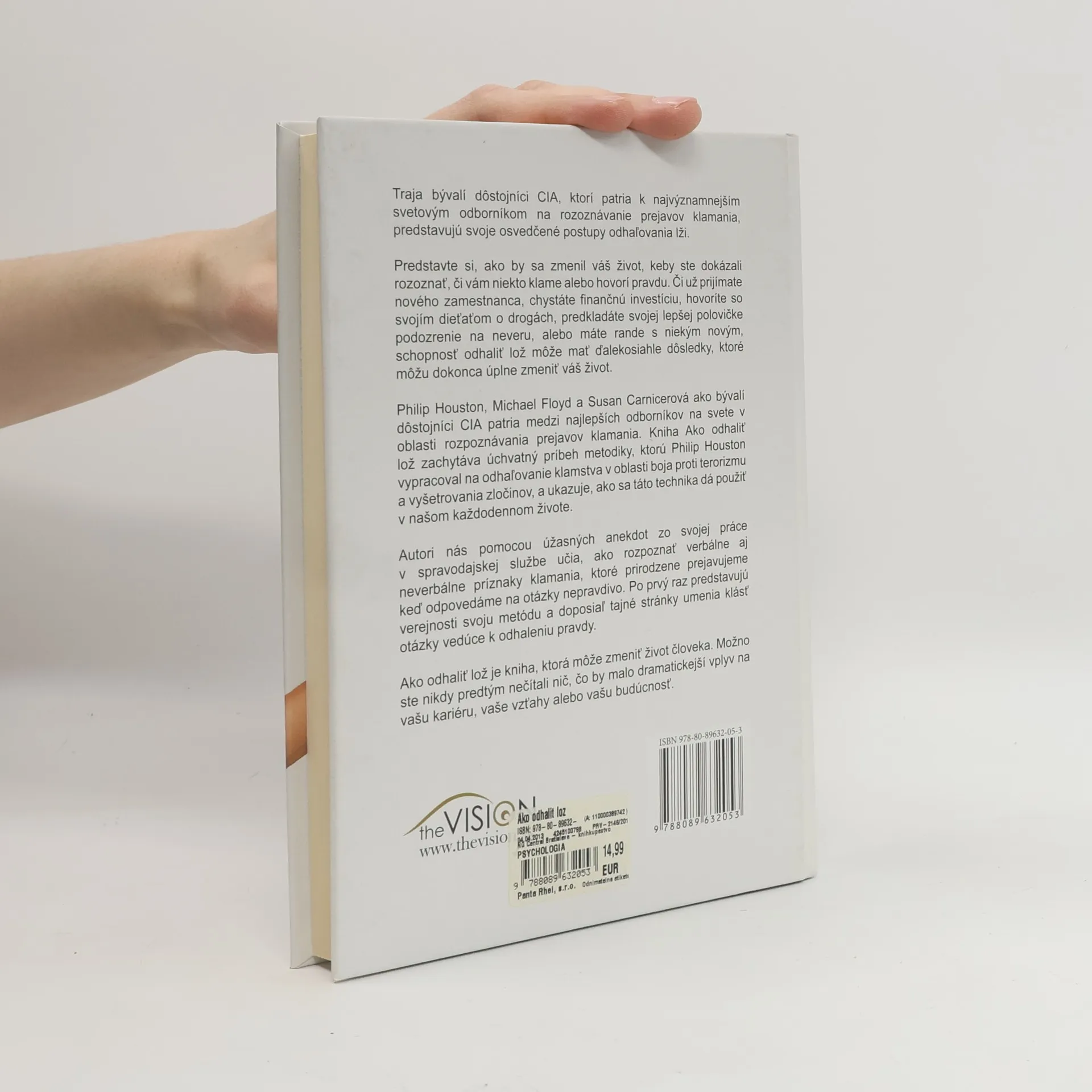 Traja bývalí dôstojníci CIA, ktorí sú svetovými odborníkmi na rozoznávanie prejavov klamania, zdieľajú svoje osvedčené metódy odhaľovania lži. Predstavte si, ako by sa váš život zmenil, keby ste dokázali rozpoznať, či vám niekto klame alebo hovorí pravdu. Schopnosť odhaliť lož môže mať zásadný dopad na rôzne situácie, ako je prijímanie zamestnanca, investovanie, rozhovory s deťmi o drogách, podozrenia na neveru alebo rande s niekým novým. Philip Houston, Michael Floyd a Susan Carnicerová, ako bývalí dôstojníci CIA, predstavujú metodiku vypracovanú na odhaľovanie klamstva v boji proti terorizmu a vyšetrovaní zločinov. Kniha zachytáva ich techniky a ukazuje, ako ich možno aplikovať v každodennom živote. Autori prostredníctvom fascinujúcich anekdot z praxe učia, ako rozpoznať verbálne a neverbálne príznaky klamania, ktoré sa objavujú pri nepravdivých odpovediach. Po prvý raz odhaľujú svoju metódu a tajné aspekty umenia klásť otázky, ktoré vedú k pravde. Tento text ponúka nástroje, ktoré môžu zásadne ovplyvniť vašu kariéru, vzťahy a budúcnosť. Je to kniha, ktorá má potenciál zmeniť váš život.