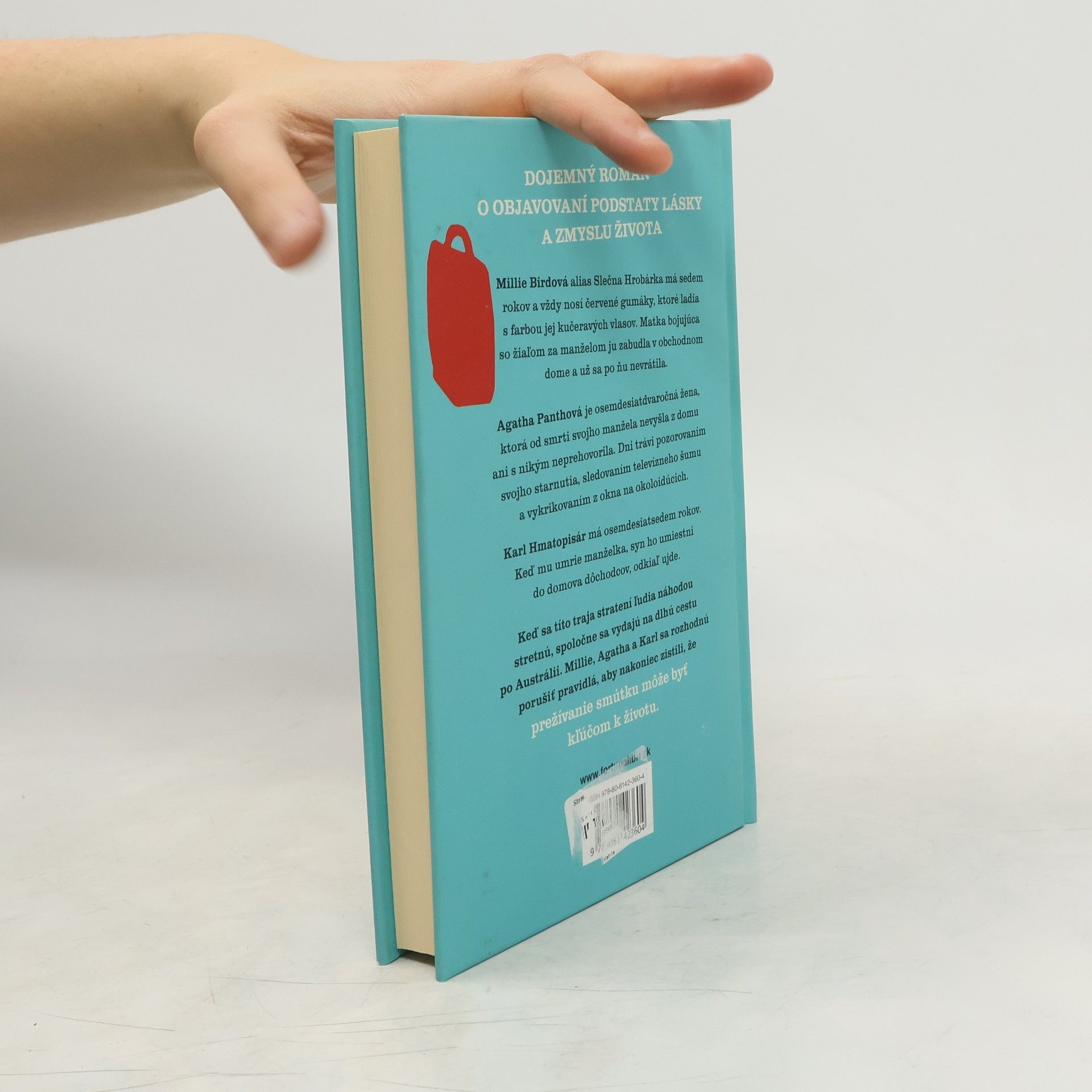 Dojemný román o objavovaní podstaty lásky a zmyslu života. Príbeh robia jedinečným jeho tri hlavné postavy: Millie Birdová alias Slečna Hrobárka má sedem rokov a vždy nosí červené gumáky, ktoré ladia s farbou jej kučeravých vlasov. Matka bojujúca so žiaľom za manželom ju zabudla v obchodnom dome a už sa po ňu nevrátila. Agatha Panthová je osemdesiatdvaročná žena, ktorá od smrti svojho manžela nevyšla z domu ani s nikým neprehovorila. Dni trávi pozorovaním svojho starnutia, sledovaním televízneho šumu a vykrikovaním z okna na okoloidúcich. Karl Hmatopisár má osemdesiatsedem rokov, ťuká prstami do vzduchu, tak ako „písaval“ svojej manželke na pokožku a premýšľa o svojom úteku z domova dôchodcov. Keď sa títo traja stratení ľudia náhodou stretnú a spoločne vydajú na cestu po Austrálii, všetky doterajšie pravidlá a stereotypy miznú. Millie túži nájsť svoju matku. Karl chce zistiť, ako sa stať mužom. A Agatha si želá, aby sa všetko vrátilo do starých koľají. Príbeh o živote a láske vás prinúti smiať sa a plakať zároveň a naučí, že prežívanie smútku môže byť kľúčom k životu. V románe sa vrátite do svojho detstva rovnako ako Millie a precítite, aké je byť v objatí, v ťažkostiach a v samote, aký úprimný a vtipný vie byť pohľad na život, a najmä, ako možno nájsť priateľstvo a láskavosť na miestach, kde to najmenej čakáte.