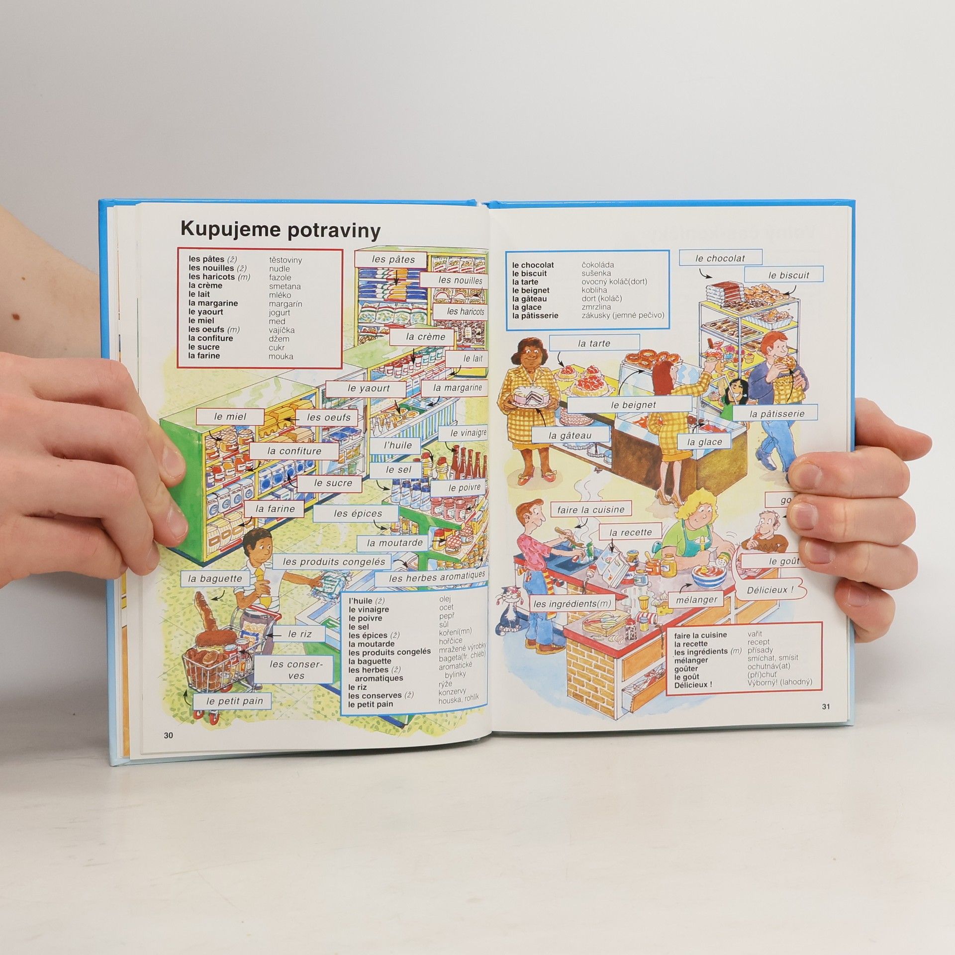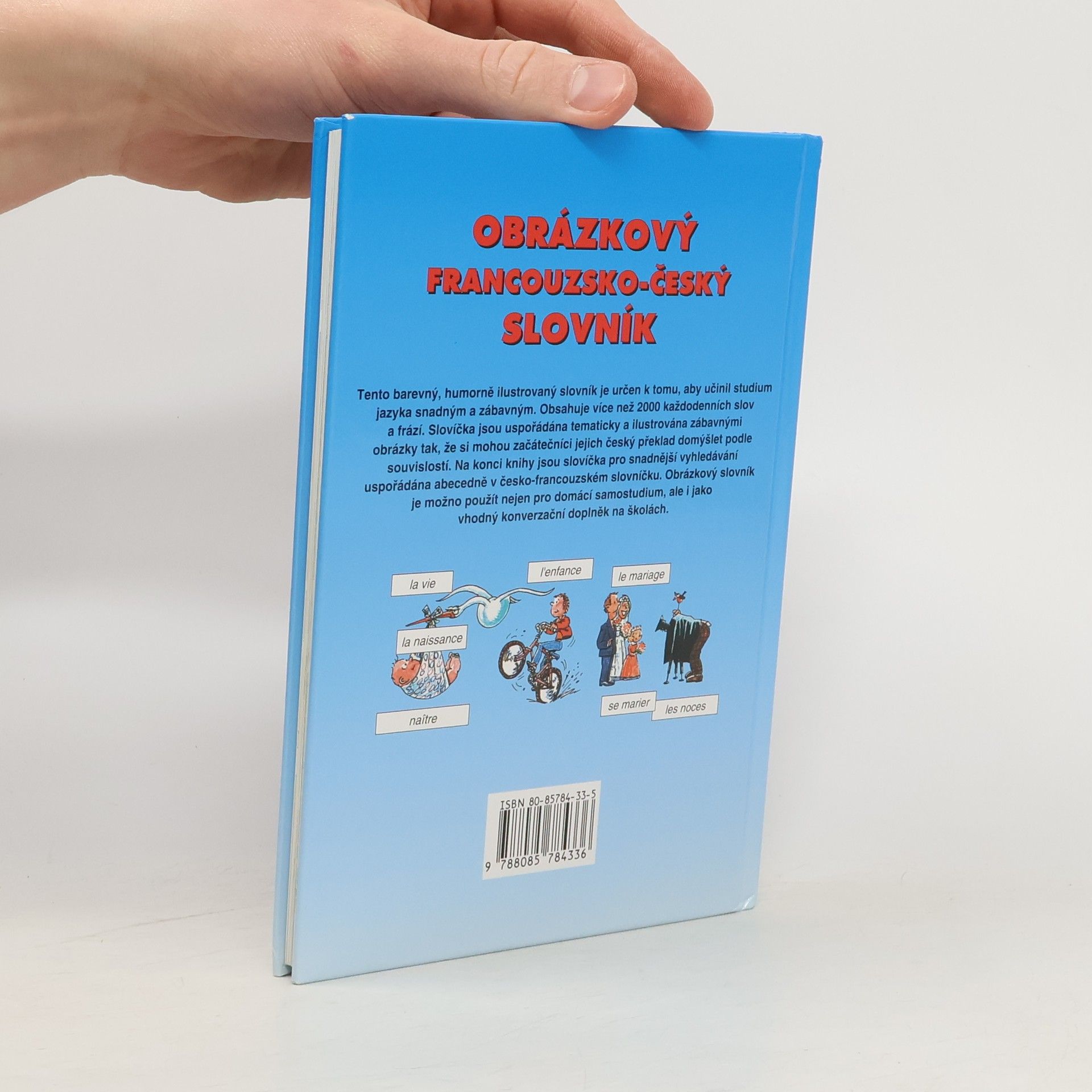 Tento barevný, humorně ilustrovaný slovník je určen k tomu, aby učinil studium jazyka snadným a zábavným. Obsahuje více než 2000 běžně používaných francouzských slov, slovních a větných spojení spolu se situačními obrázky, které pomohou lépe si zapamatovat slovíčka. Přímo u obrázků jsou slovíčka napsána v malých rámečcích a obláčcích. Na každé stránce jsou pak všechna ještě jednou souhrnně uvedena ve velkém rámečku společně s českým překladem. Obrázkový slovník neobsahuje žádnou gramatiku, má jednoduše dávat podnět k mluvení a napomáhat porozumění francouzskému textu. Lze jej použít bez jakýchkoliv předběžných znalostí francouzštiny, neboť obrázky mluví srozumitelnou řečí. Na konci knihy jsou slovíčka pro snadnější vyhledávání uspořádána abecedně v česko-francouzském slovníčku. Vzhledem k tomu, že francouzská výslovnost je pro začátečníka poměrně obtížná, je součástí závěrečného slovníčku také přepis výslovnosti. Obrázkový slovník je možno použít nejen pro domácí samostudium.