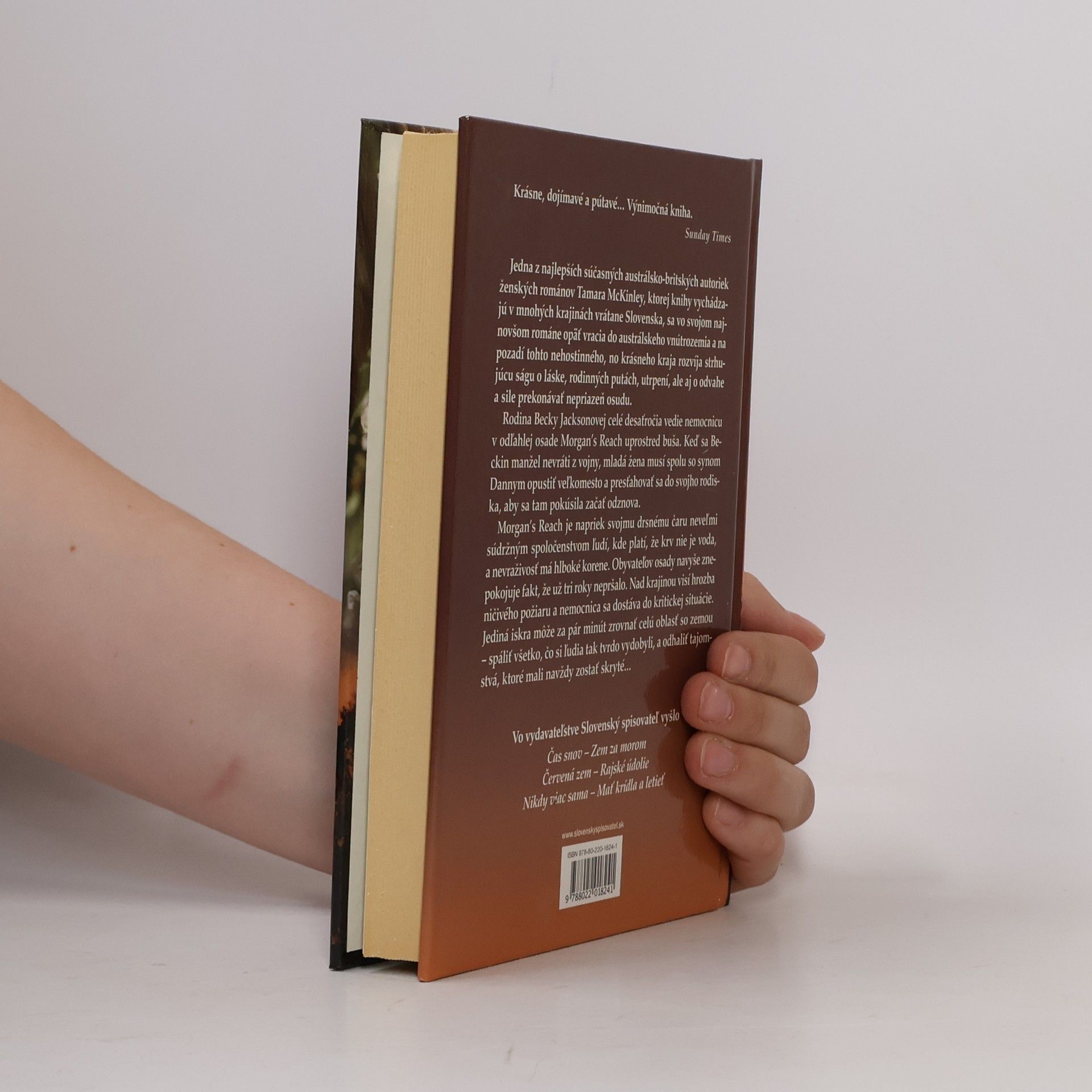 Strhujúca rodinná sága z austrálskeho vnútrozemia. Rodina Becky Jacksonovej celé desaťročia vedie nemocnicu v osade Morgan´s Reach uprostred buša. Keď sa Beckin manžel nevráti z vojny, mladá žena sa spolu so synom Dannym presťahuje do svojho rodiska a pokúsi sa začať odznova. V tomto drsno-krásnom kraji však už tri roky nepršalo. Nad krajinou visí hrozba ničivého požiaru. Jediná iskra môže za pár minút spáliť všetko, čo si ľudia tvrdo vydobyli, a odhaliť tajomstvá, ktoré mali navždy zostať skryté...