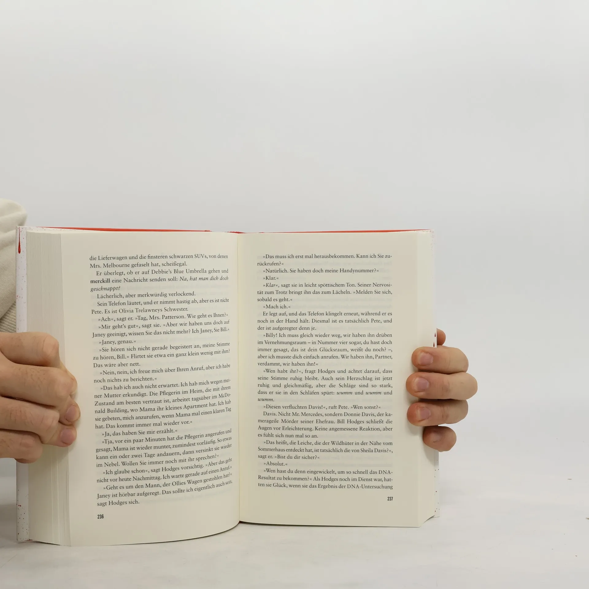 Ein Mercedes S 600 rast in eine Menschenmenge, es gibt viele Todesopfer, und der Fahrer entkommt. Auf dem Beifahrersitz liegt eine Clownsmaske, das Lenkrad ziert ein grinsender Smiley. Monate später meldet sich der Massenmörder und droht mit einem Inferno. Stephen King gewährt uns in dieser Geschichte beunruhigende Einblicke in den Geist eines besessenen Mörders ohne Gewissen. In einer wirtschaftlich angeschlagenen Stadt im Mittleren Westen der USA haben sich Hunderte verzweifelte Arbeitsuchende auf einem Parkplatz versammelt, um der ersten Jobbörse beizuwohnen. Plötzlich rast ein Autofahrer mit einem gestohlenen Mercedes durch die wartende Menge, verursacht viele Tote und Verletzte und entkommt. Der pensionierte Detective Bill Hodges plagt sich monatelang mit dem ungelösten Fall des Mercedes-Killers. Als er schließlich Post von jemandem erhält, der sich zu der Tat bekennt und ein noch grausameres Verbrechen ankündigt, erwacht Hodges aus seiner Rentnerlethargie. Zusammen mit einigen ungewöhnlichen Verbündeten setzt er alles daran, den geisteskranken Killer zu stoppen. Doch der Mörder bleibt seinen Verfolgern immer einen Schritt voraus.