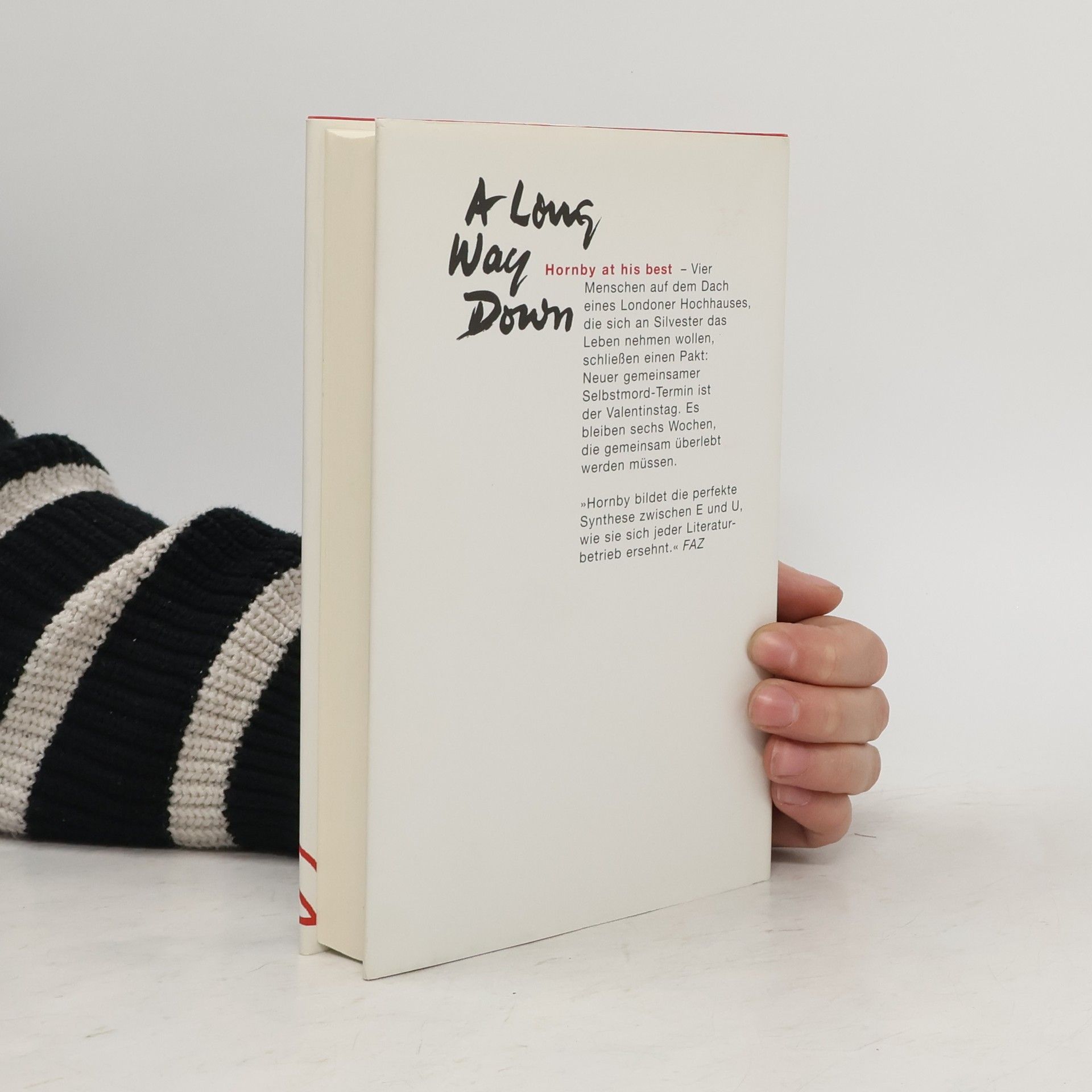 Komisch, rasant und mit schwarzem Humor – der neue Nick Hornby. Vier Menschen auf dem Dach eines Londoner Hochhauses haben an Silvester den gleichen Plan: sich das Leben zu nehmen. Doch da sie nicht gleichzeitig springen können, schließen sie einen Pakt und setzen den neuen Termin auf den Valentinstag. Sechs Wochen bleiben ihnen, um gemeinsam zu überleben. Die Gruppe, die sich zunächst vom Dach zurückzieht, besteht aus Maureen, einer altjüngferlichen Mutter eines schwerbehinderten Sohnes; Martin, einem ehemaligen Talkmaster, der nach seiner Haftstrafe in der Versenkung verschwunden ist; Jess, der rebellischen Tochter eines Politikers, die mit ihrer Direktheit polarisiert; und JJ, der von seinem besten Freund, dem Sänger seiner Band, im Stich gelassen wurde. Während sie ihre Geschichten teilen, entwickeln sie unerwartete Bindungen und helfen sich gegenseitig, ihre Probleme zu bewältigen. Hornby zeigt in diesem urkomischen und temporeichen Roman erneut sein Talent, komplexe Charaktere zu schaffen und deren Entwicklung auf humorvolle Weise darzustellen. Die vier Protagonisten, so unterschiedlich sie auch sind, finden auf wundersame Weise zueinander und erleben eine Reise, die sie nicht nur näher zusammenbringt, sondern auch ihre Sicht auf das Leben verändert.