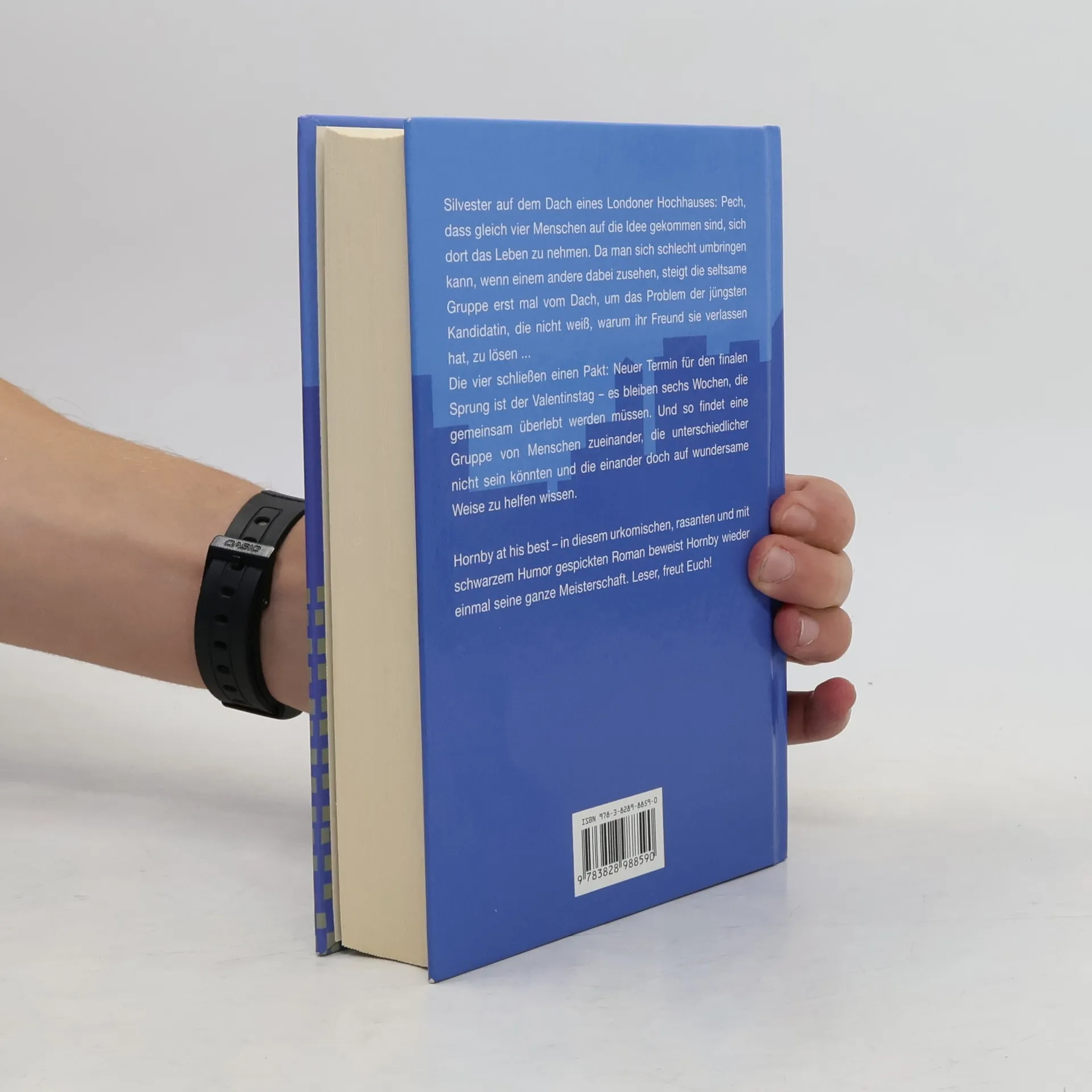 Vier Menschen auf dem Dach eines Londoner Hochhauses, die sich an Silvester das Leben nehmen wollen, schließen einen Pakt: neuer gemeinsamer Selbstmord-Termin ist der Valentinstag. Es bleiben sechs Wochen, die gemeinsam überlebt werden müssen... Silvester, auf dem Dach eines Hochhauses: Pech, dass gleich vier Menschen auf die Idee gekommen sind, sich dort das Leben zu nehmen. Da man sich schlecht umbringen kann, wenn einem andere dabei zusehen, steigt die seltsame Gruppe erst mal vom Dach, um das Problem der jüngsten Kandidatin, die nicht weiß, warum ihr Freund sie verlassen hat, zu lösen. Nach und nach erzählen sie sich ihre Geschichten. Da ist die altjüngferliche Maureen, deren Sohn Matty schwerstbehindert ist und die diese Belastung allein tragen muss, da ist Martin, der berühmte Talkmaster, den nach einem Gefängnisaufenthalt niemand mehr auf dem Bildschirm sehen will, Jess, die aufmüpfige Tochter eines Politikers, ist so direkt, dass sie alle vor den Kopf stößt, und JJ, der von seinem besten Freund, dem Sänger seiner Band, im Stich gelassen wurde. Die vier verabreden, mit dem finalen Sprung bis zum Valentinstag zu warten – und so findet eine Gruppe von Menschen zueinander, die unterschiedlicher nicht sein könnten und die einander doch auf wundersame Weise zu helfen wissen.