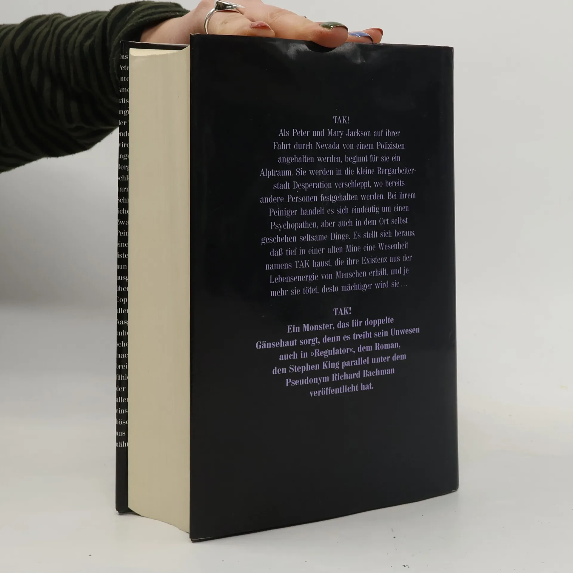 Unter Vortäuschung falscher Tatsachen werden der Schriftsteller Marinville, die Familie Carver und das Ehepaar Jackson von einem mysteriösen Polizisten verschleppt und in einer Zelle gefangengehalten. Das geschieht in Desperation, einem ausgestorbenen Bergarbeiterstädtchen in Nevada, wo unheimliche Dinge vor sich gehen: In einer alten Mine scheint ein Monster zu leben, das nur durch die Lebensenergie von Menschen existieren kann. Ein Horrorszenario beginnt... Stephen King hat unter dem Pseudonym Richard Bachman einen zweiten Roman mit dem Titel Regulator geschrieben, der das gleiche Thema zum Inhalt hat. Die Personen sind identisch, trotzdem ist das Ergebnis durch die verschiedenen Schreibstile und Sichtweisen ein völlig anderes.