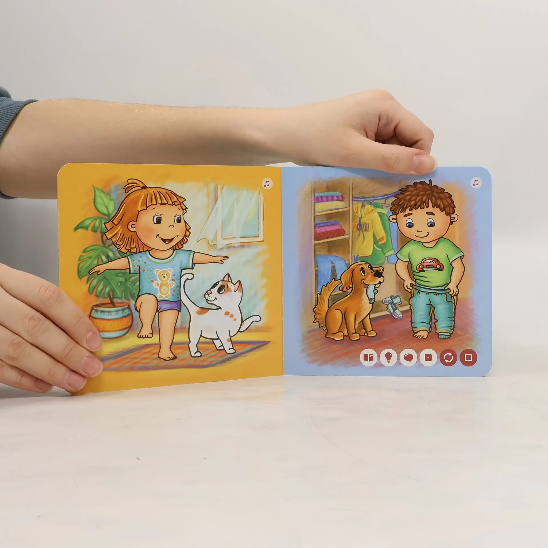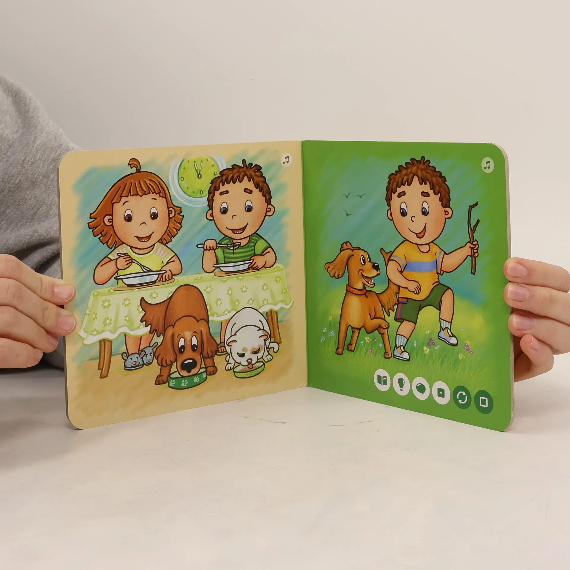 Pojďte strávit jeden den se sourozenci Honzíkem a Barborkou a jejich věrnými společníky, pejskem Benem a kočičkou Mínou. Vstanete s nimi, vyčistíte si zoubky, dáte si něco dobrého k obědu, pohrajete si a můžete si i zazpívat. Všechny činnosti totiž doprovází písnička.