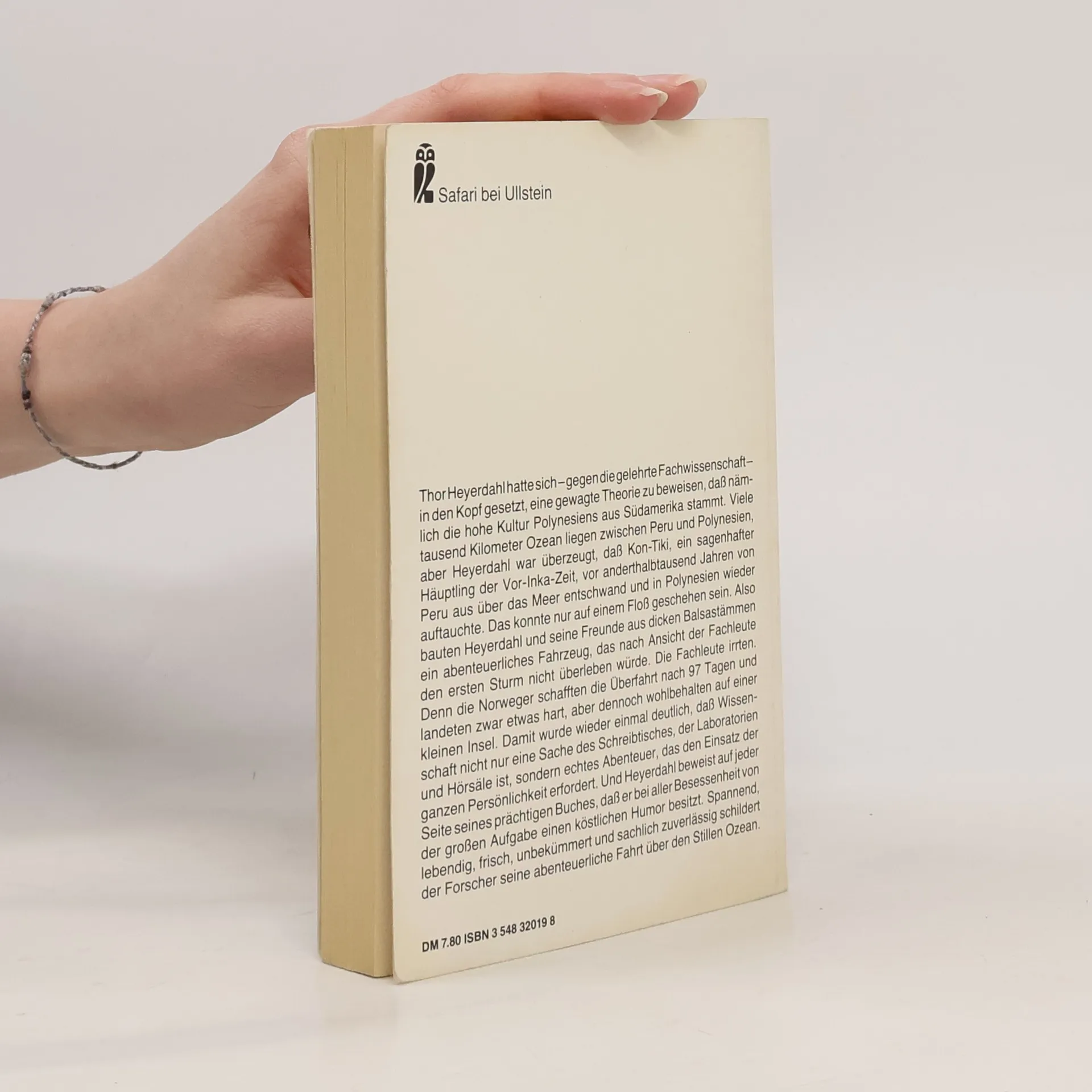 Thor Heyerdahl hatte sich – gegen die gelehrte Fachwissenschaft – in den Kopf gesetzt, eine gewagte Theorie zu beweisen, daß nämlich die hohe Kultur Polynesiens aus Südamerika stammt. Viele tausend Kilometer Ozean liegen zwischen Peru und Polynesien, aber Heyerdahl war überzeugt, daß Kon-Tiki, ein sagenhafter Häuptling der Vor-Inka-Zeit, vor anderthalbtausend Jahren von Peru aus über das Meer entschwand und in Polynesien wieder auftauchte. Das konnte nur auf einem Floß geschehen sein. Also bauten Heyerdahl und seine Freunde aus dicken Balsastämmen ein abenteuerliches Fahrzeug, das nach Ansicht der Fachleute den ersten Sturm nicht überleben würde. Die Fachleute irrten. Denn die Norweger schafften die Überfahrt nach 97 Tagen und landeten zwar etwas hart, aber dennoch wohlbehalten auf einer kleinen Insel. Damit wurde wieder einmal deutlich, daß Wissenschaft nicht nur eine Sache des Schreibtisches, der Laboratorien und Hörsäle ist, sondern echtes Abenteuer, das den Einsatz der ganzen Persönlichkeit erfordert. Und Heyerdahl beweist auf jeder Seite seines prächtigen Buches, daß er bei aller Besessenheit von der großen Aufgabe einen köstlichen Humor besitzt. Spannend, lebendig, frisch, unbekümmert und sachlich zuverlässig schildert der Forscher seine abenteuerliche Fahrt über den Stillen Ozean.