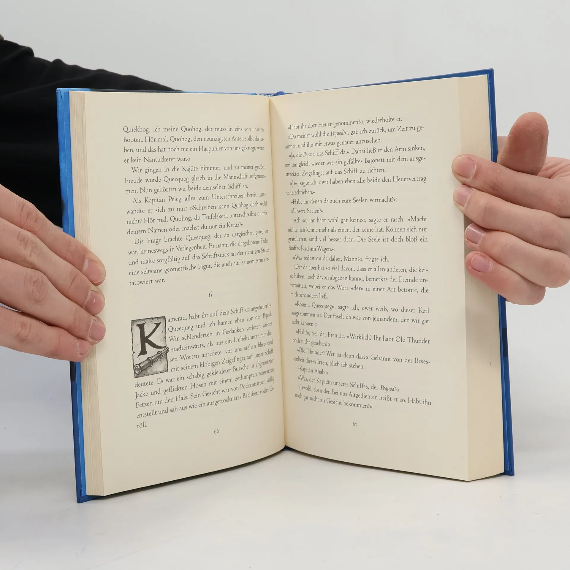 Kapitän Ahabs fanatische Jagd nach dem weißen Wal, einer der bekanntesten Abenteuerromane der Weltliteratur, wird neben einer für den Erwachsenenbestand empfohlenen Edition (BA 2/02) in zahlreichen gekürzten Ausgaben für Jugendliche angeboten. Hervorzuheben sind die von G. Sachse bearbeitete und übersetzte Edition als DresslerKlassiker (BA 7/01, davor BA 1/93) und die als gleichwertig eingestufte ArenaPublikation (BA 11/99). Auch als "exzellenter" Comic, so der Rezensent, wird das berühmte Buch angeboten (BA 10/98). Für die vorliegende Ausgabe in der GEOlinoBibliothek wurde die gewandte Übersetzung von M. CzedikEysenberg gewählt, die auch der 1992 bei Ueberreuter erschienenen Ausgabe zugrunde liegt (BA 8/92). Preiswert und optisch ansprechend mit stabilem, farbigem Einband, SchwarzWeißZeichnungen und Lesebändchen, ist auch dieser 15. Band der auf 20 Bände angelegten Reihe von Jugendbuchklassikern (vgl. zuletzt Sewell, BA 10/05) breit zu empfehlen.. Kapitän Ahab, der mit seiner rauhen Besatzung in See sticht, hat nur ein Ziel: Er will den sagenhaften weißen Wal aufspüren. Eine abenteuerliche Jagd beginnt.