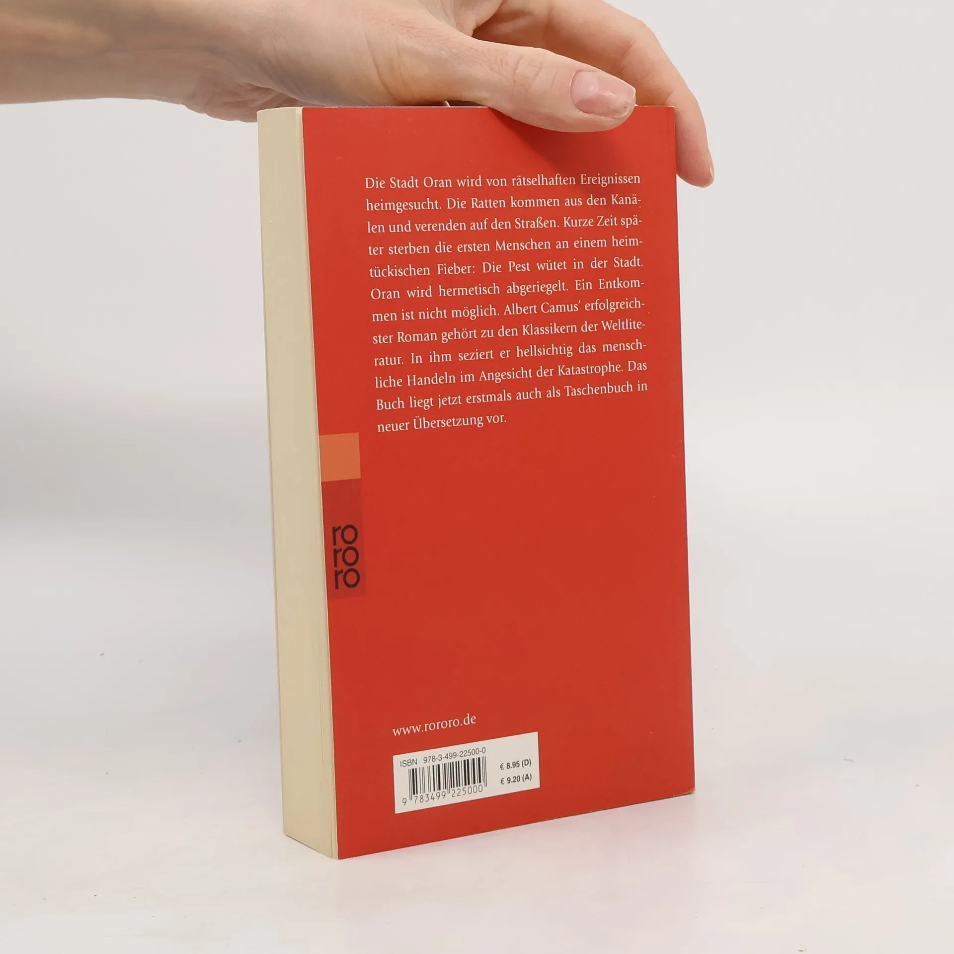 «Camus irrt sich nicht in seinem Roman. Das Drama sind nicht die, die durch die Hintertür zum Friedhof entwischen – und für die die Angst vor der Pest endlich vorbei war –, sondern die Lebenden, die in ihren stickigen Schlafzimmern Blut schwitzten, ohne der belagerten Stadt entfliehen zu können.» (Gabriel García Márquez)Die Stadt Oran wird von rätselhaften Ereignissen heimgesucht. Die Ratten kommen aus den Kanälen und verenden auf den Straßen. Kurze Zeit später sterben die ersten Menschen an einem heimtückischen Fieber: Die Pest wütet in der Stadt. Oran wird hermetisch abgeriegelt. Ein Entkommen ist nicht möglich. Albert Camus’ erfolgreichster Roman gehört zu den Klassikern der Weltliteratur. In ihm seziert er hellsichtig das menschliche Handeln im Angesicht einer Katastrophe.