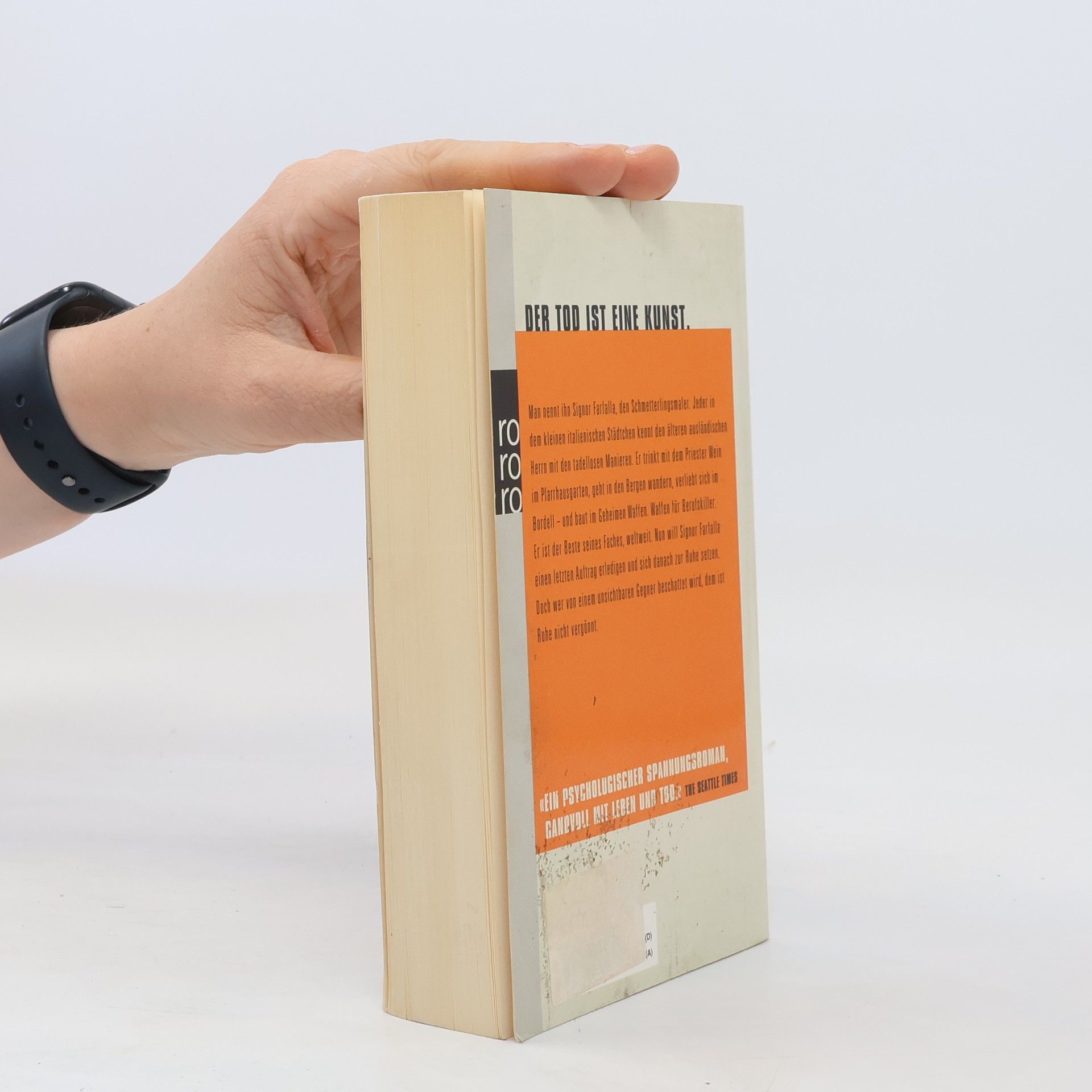 DER TOD IST EINE KUNST. Man nennt ihn Signor Farfalla, den Schmetterlingsmaler. Jeder in dem kleinen italienischen Städtchen kennt den älteren ausländischen Herrn mit den tadellosen Manieren. Er trinkt mit dem Priester Wein im Pfarrhausgarten, geht in den Bergen wandern, verliebt sich im Bordell und baut im Geheimen Waffen. Waffen für Berufskiller. Er ist der Beste seines Faches, weltweit. Nun will Signor Farfalla einen letzten Auftrag erledigen und sich danach zur Ruhe setzen. Doch wer von einem unsichtbaren Gegner beschattet wird, dem ist Ruhe nicht vergönnt. «EIN PSYCHOLOGISCHER SPANNUNGSROMAN, RANDVOLL MIT LEBEN UND TOD.» THE SEATTLE TIMES