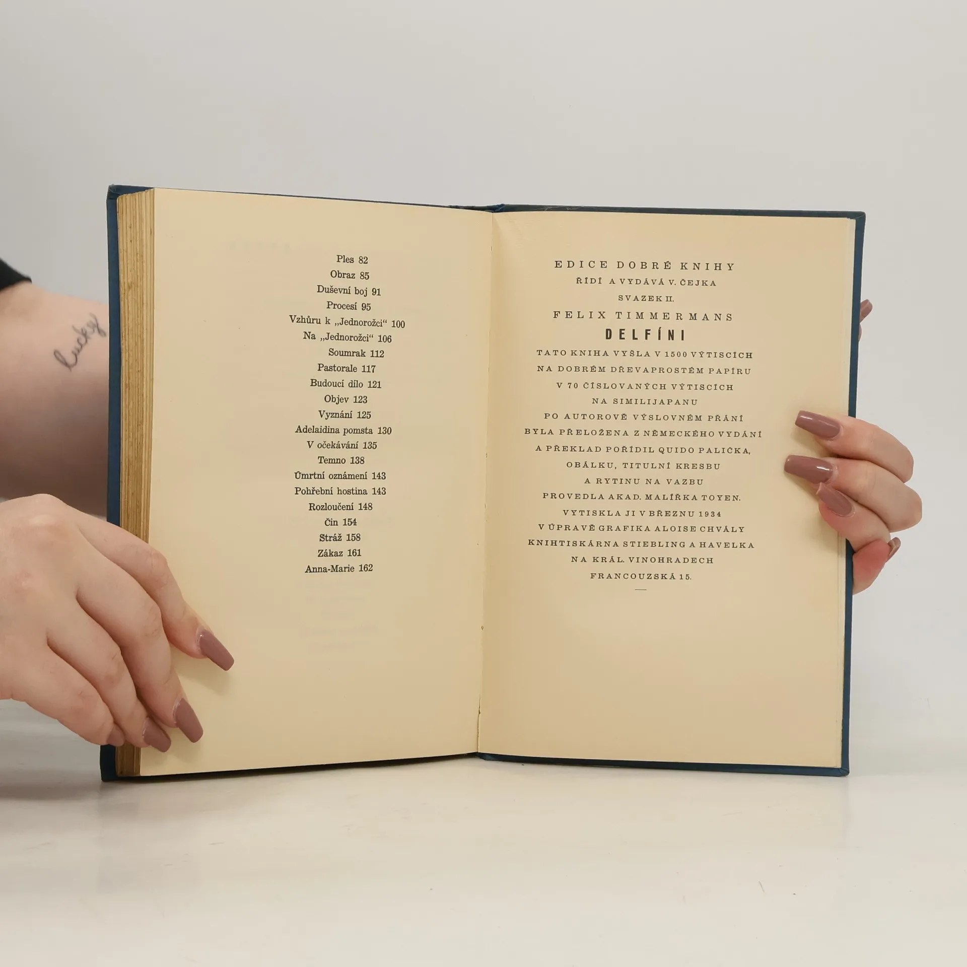 Obálku, titulní kresbu a rytinu na vazbu provedla akad. malířka Toyen.