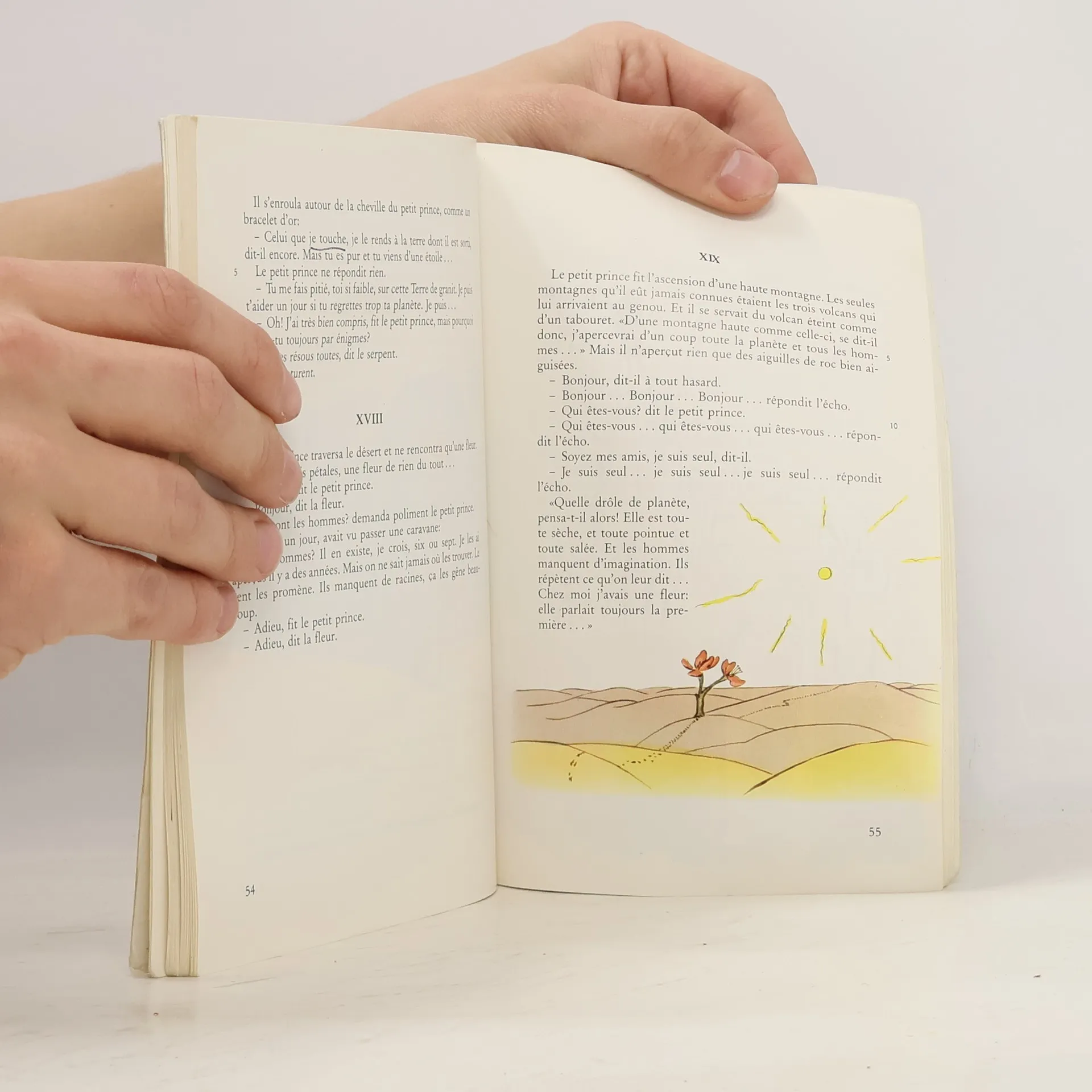 «Le premier soir, je me suis donc endormi sur le sable à mille milles de toute terre habitée. J'étais bien plus isolé qu'un naufragé sur un radeau au milieu de l'océan. Alors, vous imaginez ma surprise, au lever du jour, quand une drôle de petite voix m'a réveillé. Elle disait : “S'il vous plaît... dessine-moi un mouton!” J'ai bien regardé. Et j'ai vu ce petit bonhomme tout à fait extraordinaire qui me considérait gravement...» Nouvelle impression réalisée à partir de l'édition originale, avec des aquarelles de l'auteur.