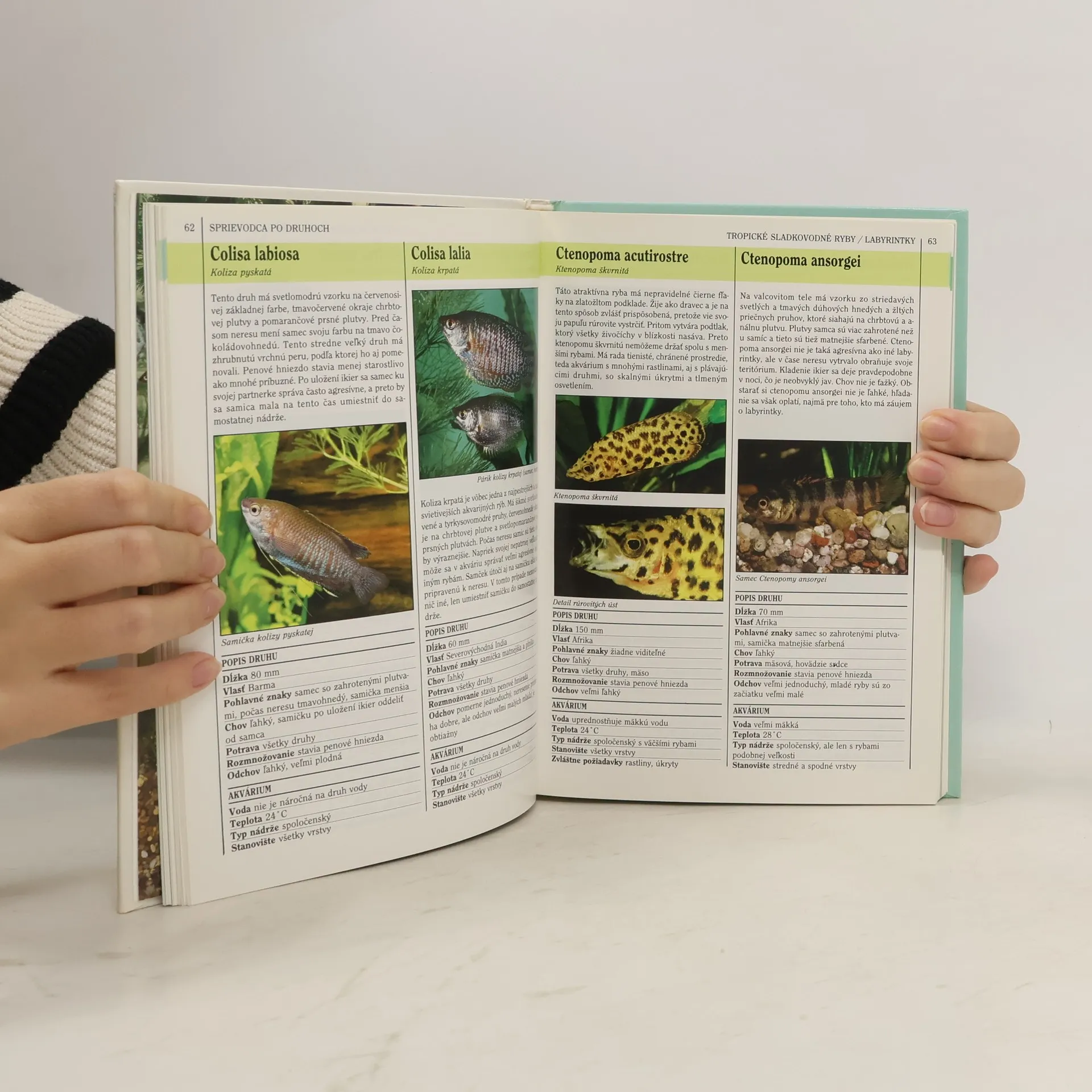 Kapitoly: Anatómia rýb, Výber rýb, Sprievodca po druhoch rýb, Akvárium, Zariaďovanie akvária, Kŕmenie, Starostlivosť o zdravie, Chov, Výstavy rýb, Fotografovanie rýb.