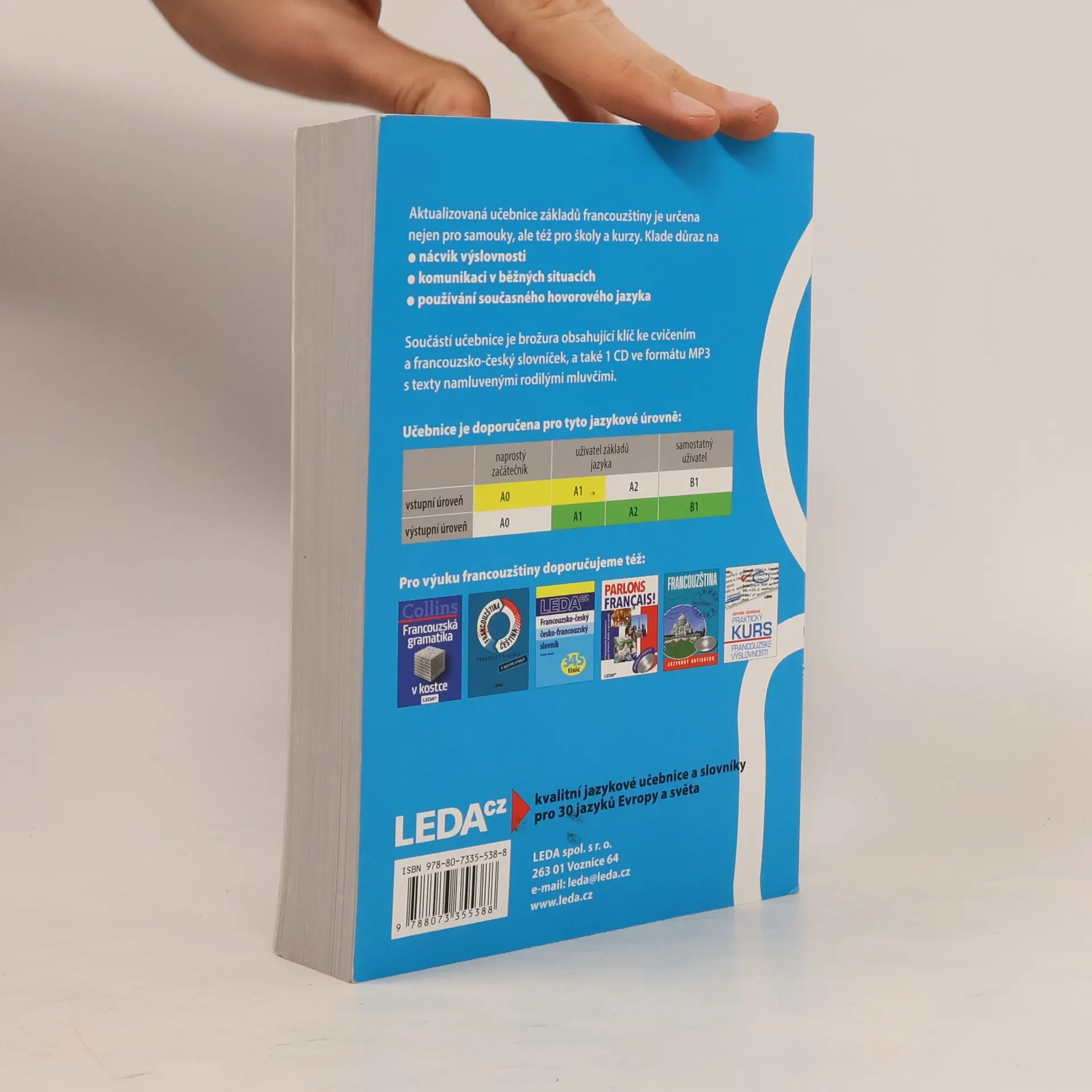 Aktualizovaná a doplněná verze oblíbené učebnice určené samoukům, účastníkům jazykových kurzů, studentům i „věčným“ začátečníkům, kteří si potřebují osvěžit své znalosti. Učebnice má 35 lekcí a každá obsahuje úvodní text, slovíčka, frazeologismy i francouzské reálie spjaté s každodenním životem. Následuje mluvnická část, na niž navazují cvičení. Výslovnost a pravopis jsou probírány v prvních 15 lekcích, každý fonetický jev je důkladně procvičen. Součástí učebnice je jednak brožura s klíčem ke cvičením a francouzsko-českým slovníčkem, jednak dvě audio CD, na nichž rodilí mluvčí nahráli úvodní texty, dialogy, všechna fonetická a vybraná mluvnická cvičení. Pokud uživatel poctivě prostuduje celou učebnici, měly by jeho jazykové znalosti odpovídat nejlepšímu maturitnímu průměru.