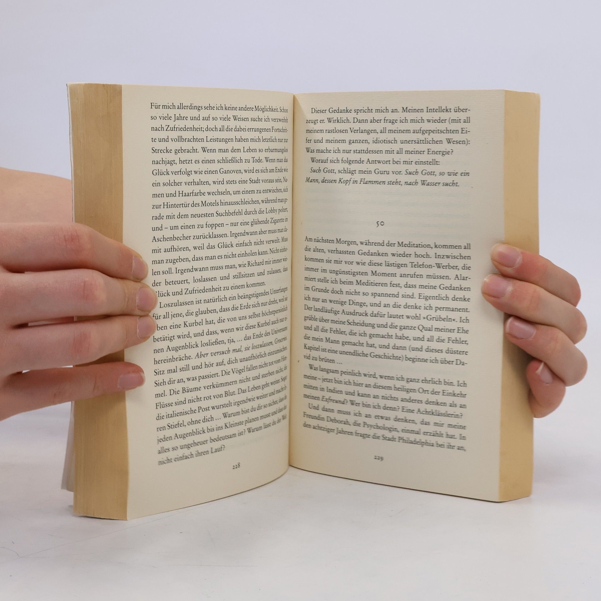 Elizabeth beschließt, ganz von vorne anzufangen. Sie lässt New York hinter sich und tritt die Reise ihres Lebens an: Dolce Vita in Italien, Meditationslehre in einem indischen Ashram und schließlich die glückliche Balance zwischen innerem und äußerem Glück auf Bali.