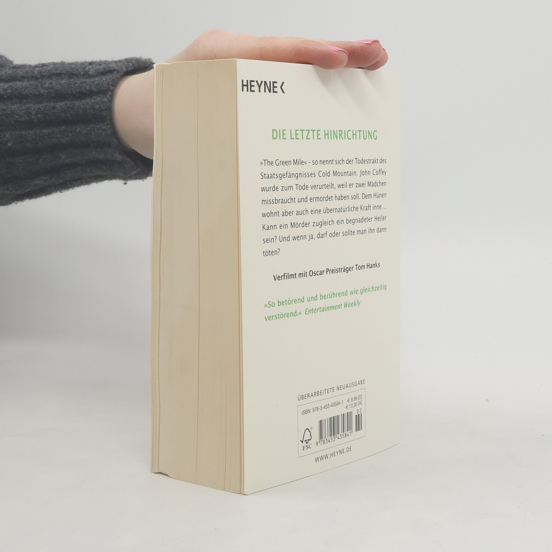 Die letzte Hinrichtung »The Green Mile« – so nennt sich der Todestrakt des Staatsgefängnisses Cold Mountain. John Coffey wurde zum Tode verurteilt, weil er zwei Mädchen missbraucht und ermordet haben soll. Dem Hünen wohnt aber auch eine übernatürliche Kraft inne … Kann ein Mörder zugleich ein begnadeter Heiler sein? Und wenn ja, darf oder sollte man ihn dann töten? Verfilmt mit Oscar-Preisträger Tom Hanks. »So betörend und berührend wie gleichzeitig verstörend.« Entertainment Weekly