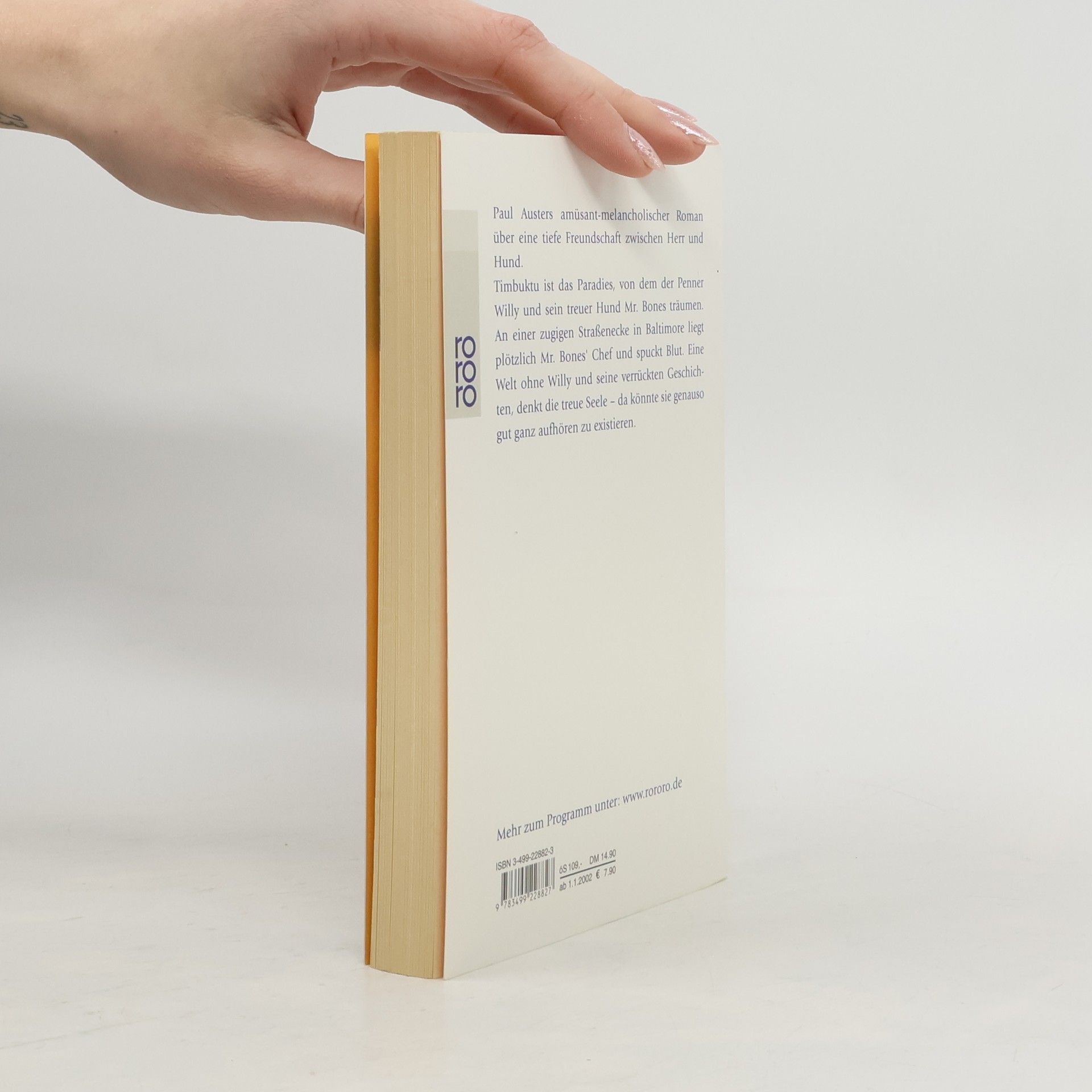 Aufzeichnungen eines Hundes Mr. Bones, die spitzohrige Promenadenmischung, sieht die Welt durch die scharfen Augen dessen, der sie stets von unten hat betrachten müssen. Und er ist nicht auf den Mund, Pardon, auf die Schnauze gefallen. Seine weisen Erkenntnisse über das Hundeleben, das wir alle führen, sind ebenso amüsant wie traurig — denn in ihrem augenzwinkernden Humor ist ihnen jede Sentimentalität fremd. «Austers berührendstes, gefühlvollstes Buch.» ( New York Times )