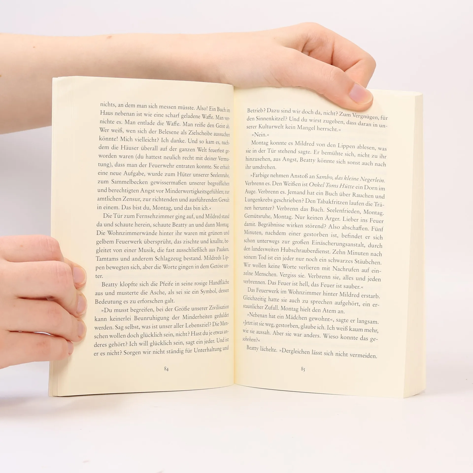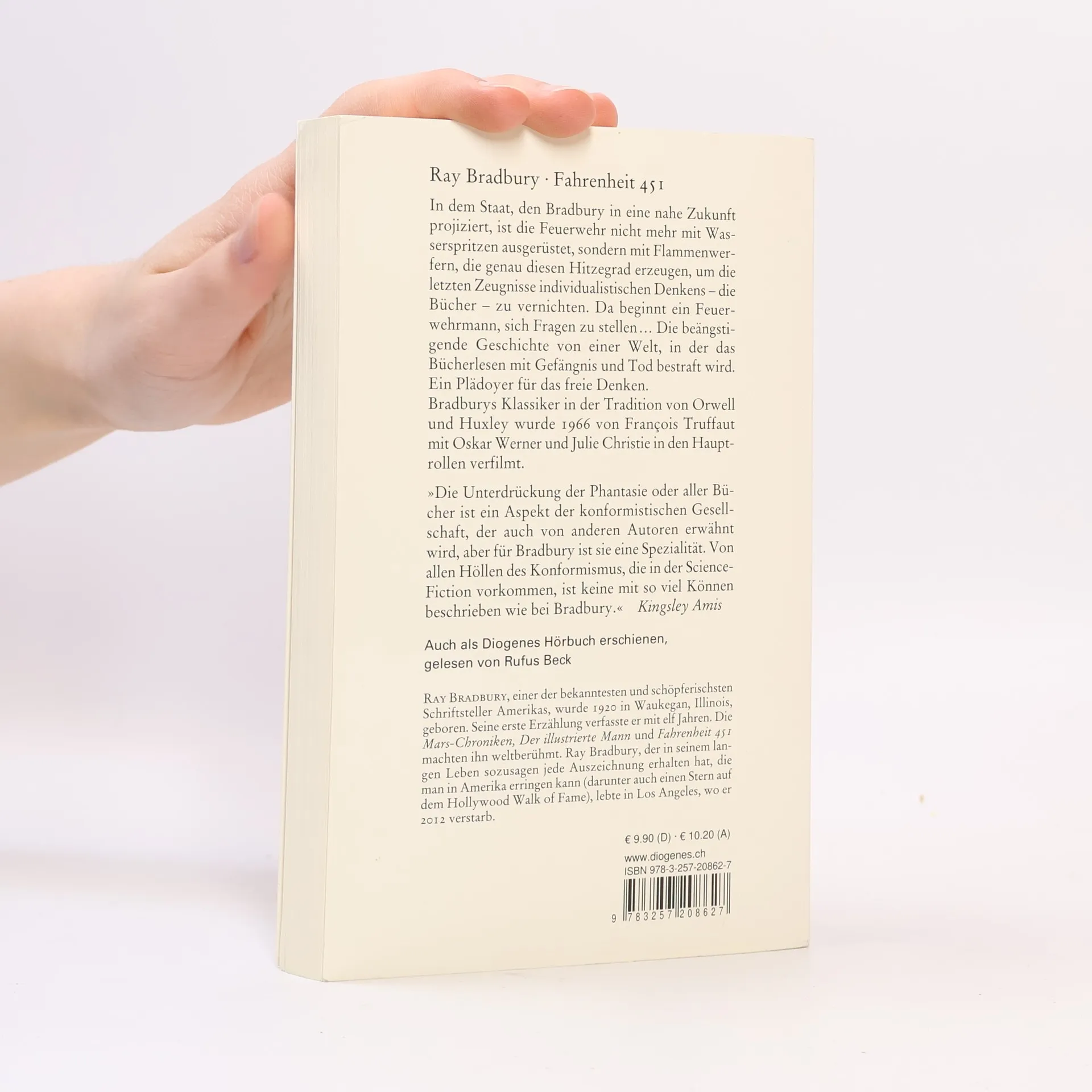 Fahrenheit 451 ist die Temperatur, bei der »Bücherpapier Feuer fängt und verbrennt«. In Ray Bradburys Zukunftsvision ist die Feuerwehr nicht mehr mit Wasserspritzen ausgerüstet, sondern mit Flammenwerfern, die genau diesen Hitzegrad erzeugen, um die letzten Zeugnisse individualistischen Denkens die Bücher zu vernichten. Da beginnt der Feuerwehrmann Guy Montag, sich Fragen zu stellen Die beängstigende Geschichte von einer Welt, in der das Bücherlesen mit Gefängnis und Tod bestraft wird, ist ein zeitloses Plädoyer für das freie Denken.