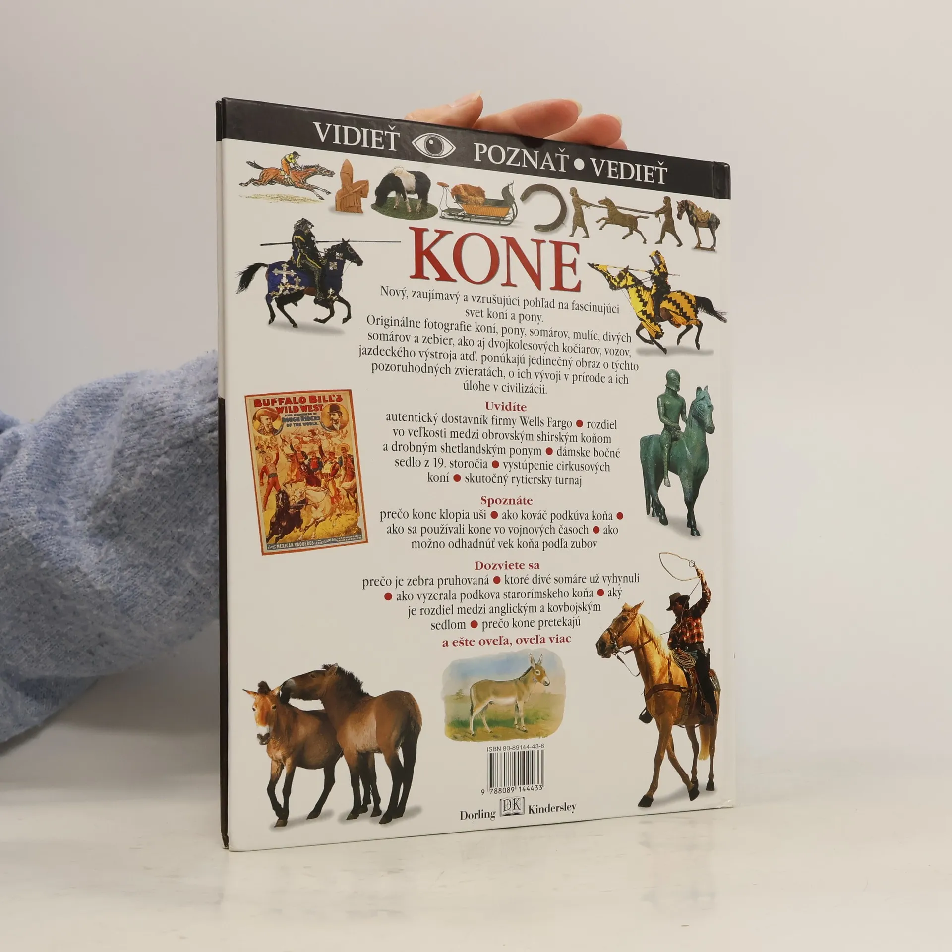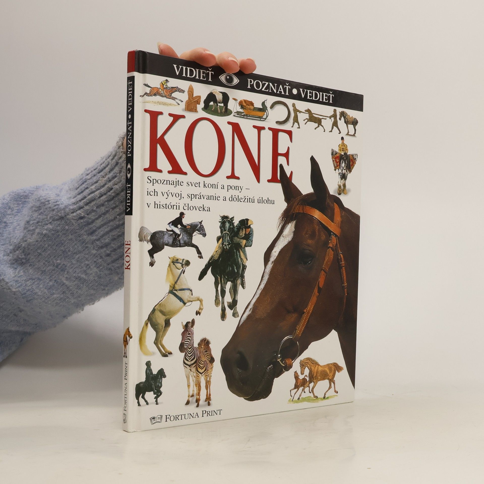 Spoznajte svet koní a pony-ich vývoj, správanie a dôležitú úlohu v histórii človeka. Kapitoly: Veľká rodina koní, Ako sa kone vyvíjali, Kosti a zuby, Zmysly a správanie, Kobyly a žriebätá, Divé somáre, S pruhovanou srsťou, Dávni predkovia, Kone v dejinách, Výkonné somáre, Muly a mulice, Podkovy a podkúvanie, Zubadlá, ostrohy a strmene, V službách cestovateľov, Hor sa do Ameriky !, Vo voľnej prírode, Kone celého sveta, Viac plemien-viac farieb, Bojové kone, V časoch rytierov, Na koni či na voze, S konským záprahom, Ťažké kone, Konská sila, So záprahom ľahkých koní, Kone v Severnej Amerike, Vo svete športových koní, Kone na dostihovej dráhe, Užitočný pony. Štvrté vydanie.