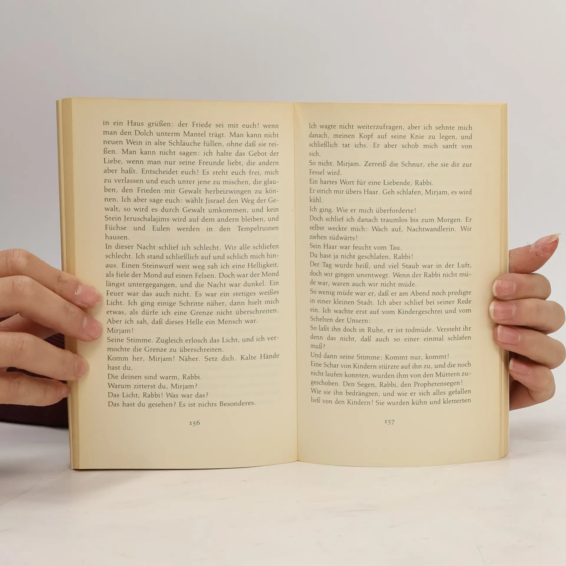 »Hier bringt eine Frau die versteinerte Männerwelt um Jesus zum Tanzen: Judas („Jehuda“) will Politik machen, Johannes („Jochanan“) grübelt ewig, Jesus („Jeschua“) heilt, und Mirjam aus Magdala, die schöne Makkabäer-Tochter, sucht sich selber und den Sinn des Lebens. Sie ist Rebellin und Getreue, Begleiterin und oft Zweifelnde, eine starke, liebende Frau. Sie harrte aus unter dem Kreuz und sah als erste Jesus nach seinem Tod. Eine Frau also von zweifelhaftem Ruf war zuerst vertraut mit dem größten Mysterium des christlichen Glaubens. „Weibergeschwätz“ war die erste Reaktion der Männer, als Mirjam von dem „Auferstandenen“ erzählte... Luise Rinser erweckt den Mann aus Nazareth zu neuem Leben. Mirjam erinnert abendländische Christen an ihre Jesus-Vergeßlichkeit.« Franz Alt in Die Zeit