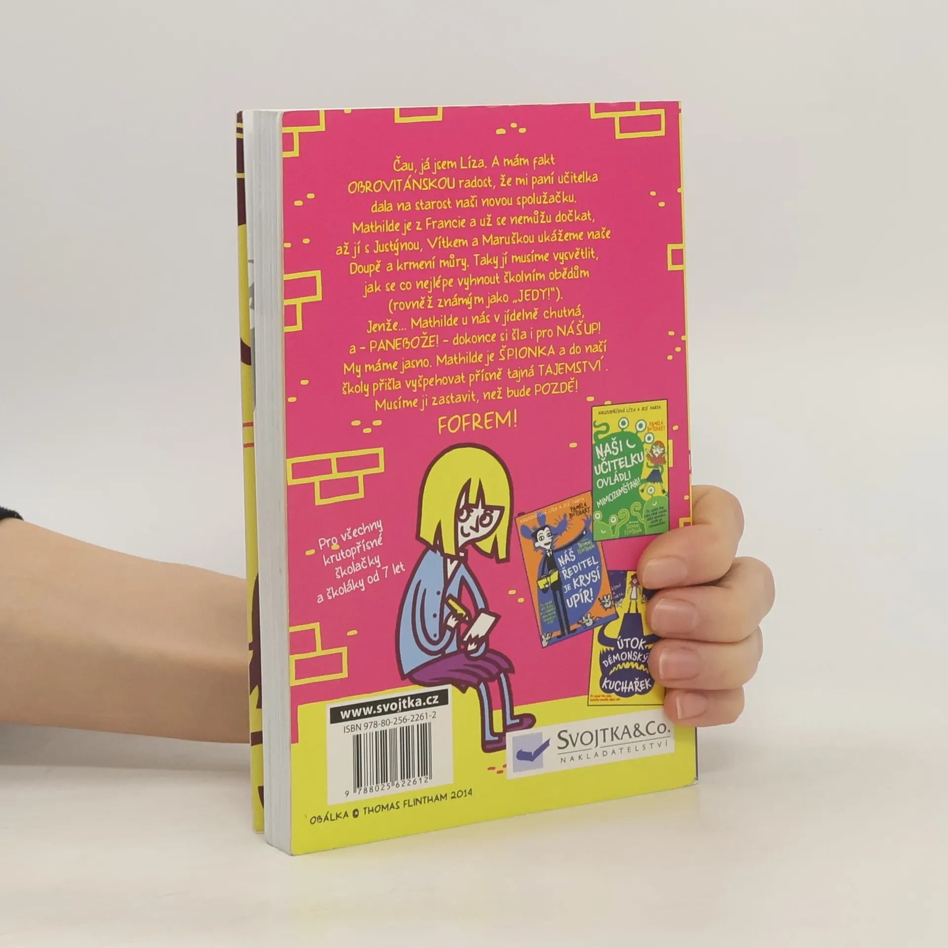 Do třídy přichází nová spolužačka. Jmenuje se Mathilde a je to Francouzska. Jenže se s Lízou a jejími kamarády vůbec nebaví, pořád si něco zapisuje do notýsku, a vůbec je celá taková podezřelá. Ještě aby to tak byla špionka! Je třeba to zjistit a překazit její ďábelské plány. Tady jde o budoucnost celé školy! Humorný příběh ze školního prostředí vypráví jeho hlavní protagoniska Líza, která si nebere servítky a vše komentuje s upřímností a bezprostředností sobě vlastní. Kniha pobaví děti od sedmi let i jejich rodiče. Co když vše bude nakonec úplně jinak, než se zdá? To zjistíme. Že se při tom krutopřísně nasmějeme, to není žádné špionské tajemství.