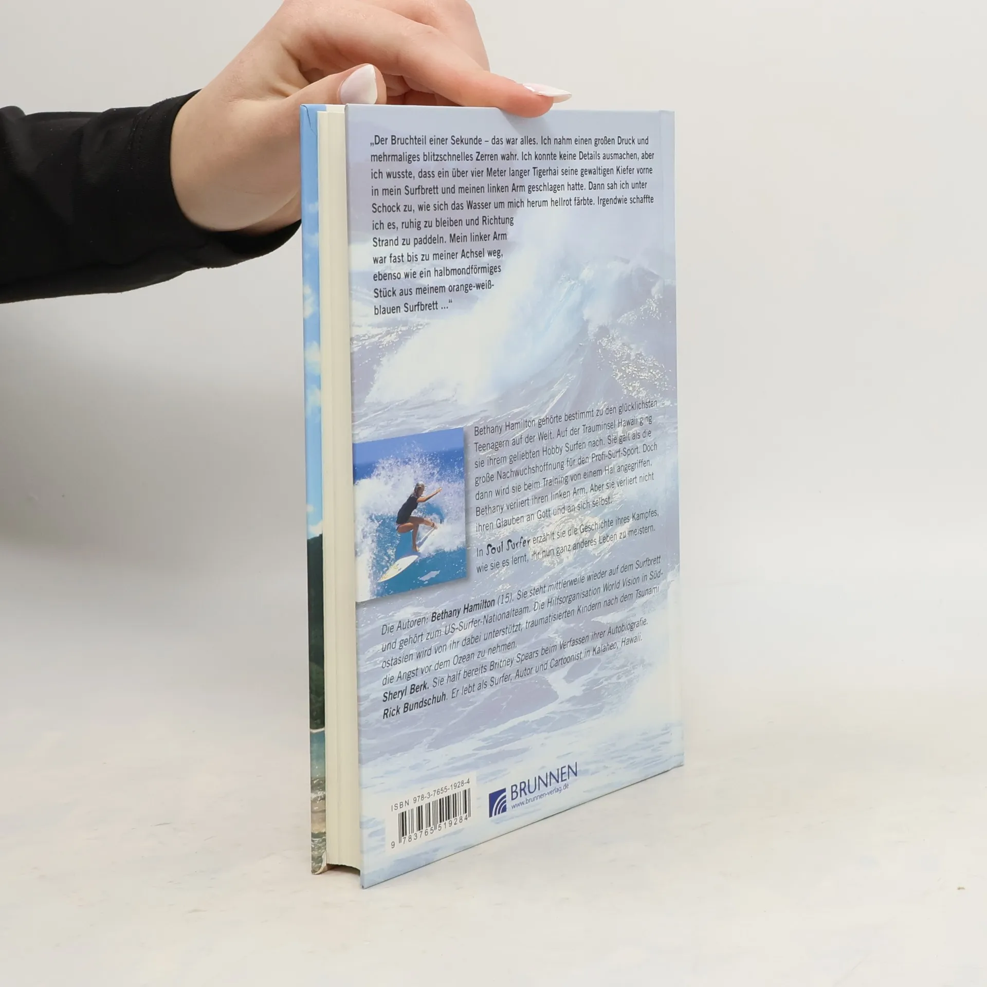 Seit Bethany Hamilton 2003 mit 13 Jahren bei einer Haiattacke ihren linken Arm verlor, ist viel passiert. Inzwischen hat Bethany eine eigene Familie gegründet und ist trotz ihres Handicaps als Surferin erfolgreicher denn je. Ihre Geschichte wurde im Buch „Soul Surfer“ veröffentlicht und mit hochkarätigen Stars wie Helen Hunt und Dennis Quaid fürs Kino verfilmt. In der erweiterten Neuauflage ihres Bestsellers „Soul Surfer“ beschreibt sie auch, wie es hinter den Kulissen des Hollywood-Filmdrehs zugegangen ist und was Bethany bei ihren Auftritten auf der ganzen Welt erlebt. Ihre Kämpfernatur, ihr unermüdliches Gottvertrauen und ihr Spaß am Sport sind absolut ansteckend und inspirierend.