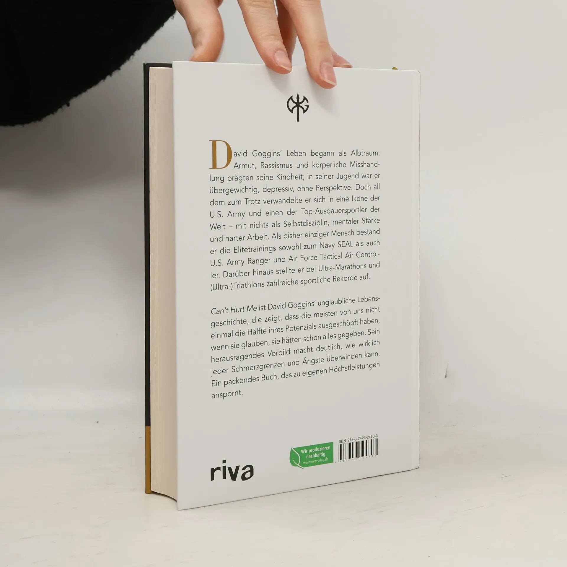 Für David Goggins war die Kindheit ein Albtraum – Armut, Vorurteile und körperliche Misshandlung verfolgten ihn bis in seine Träume. Doch durch Selbstdisziplin, mentale Stärke und harte Arbeit verwandelte er sich vom depressiven, übergewichtigen Jugendlichen ohne Perspektive in eine Ikone der U. S. Army und einen der Top-Ausdauersportler der Welt. Er ist der Einzige, der je das Elitetraining sowohl zum Navy SEAL als auch U. S. Army Ranger und Air Force Tactical Air Controller bestand, außerdem stellte er zahlreiche Ausdauerrekorde auf. In »Can’t Hurt Me« erzählt er seine wahrlich erstaunliche Lebensgeschichte und zeigt, dass die meisten von uns nicht einmal die Hälfte ihres Potenzials ausschöpfen. Goggins bezeichnet dies als 40-Prozent-Regel. Sein herausragendes Beispiel veranschaulicht hingegen, wie es jedem gelingen kann, das zu ändern und Schmerzgrenzen und Ängste zu überwinden.
