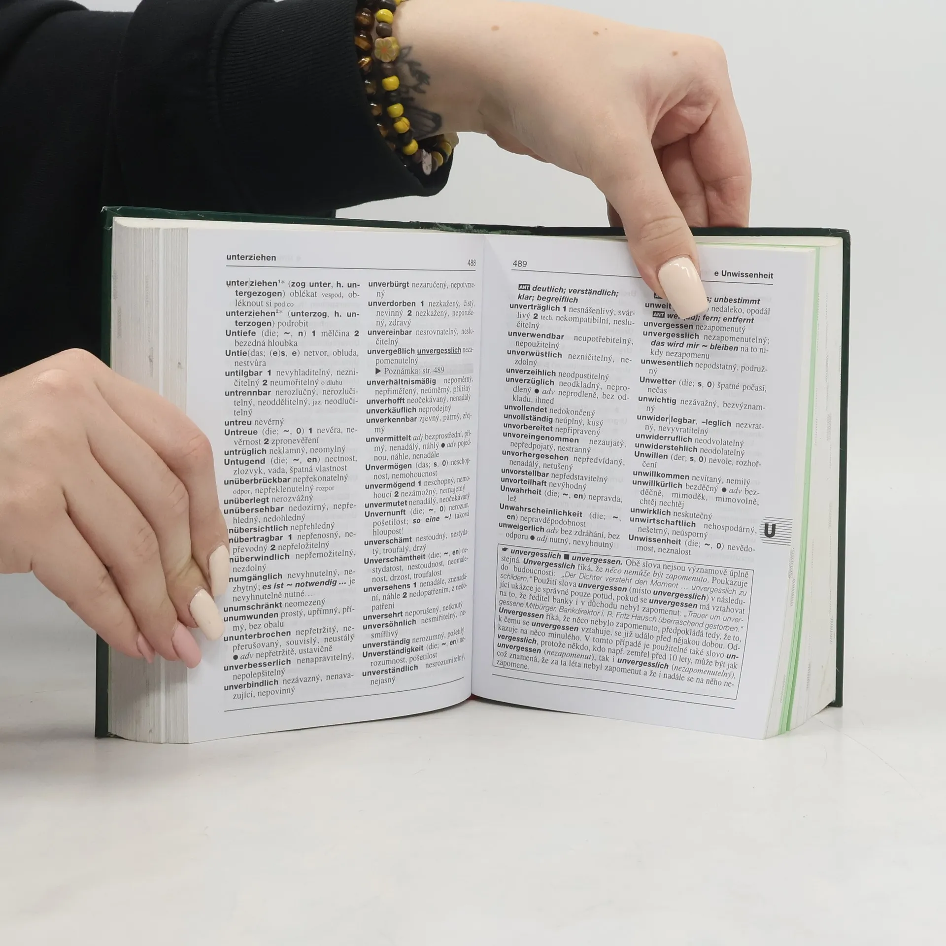 Německo-český, česko-německý studijní slovník s novým německým pravopisem. Obsahuje také: - studijní poznámky ke správnému použití a vztahům mezi slovy - samostatný slovník zemí a obyvatel v příloze - paralelní uvádění německých hesel v německo.české části a německých ekvivalentů v části česko-německé podle dosud platné a nové pravopisné normy - rozsáhlou gramatickou přílohu včetně hlavních změn v německém pravopise se slovníkem nejfrekventovanějších slov a slovních vazeb, u kterých dochází k pravopisným změnám,