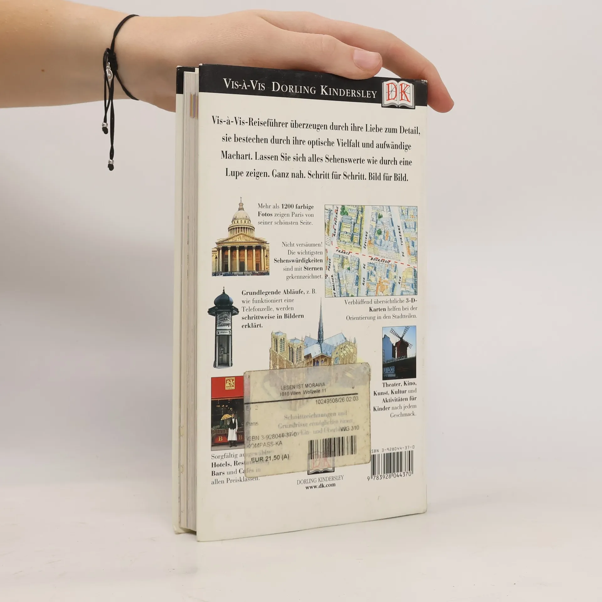 Paris bietet endlos viele Möglichkeiten. Auch wenn die Versuchung groß ist, nur im Cafe zu sitzen und die Atmosphäre zu genießen – wer möchte sich schon die Schätze der Stadt entgehen lassen? Der Vis-à-Vis-Reiseführer Paris macht Ihren Aufenthalt in der romantischsten Stadt der Welt zu einem einmaligen Erlebnis. 3D-Aufrisszeichnungen der bedeutendsten Sehenswürdigkeiten und dreidimensionale Pläne der interessantesten Viertel zeigen alles Wichtige auf einen Blick. Zusätzliche Vorschläge für Spaziergänge verraten, wie Sie die einzelnen Stadtteile am besten erkunden können. Ein Extra-Kapitel stellt besonders schöne Ausflugsziele in der Umgebung, wie z. B. das berühmte Schloss Versailles, vor. Mit Sprachführer und vielen praktischen Reisehinweisen.