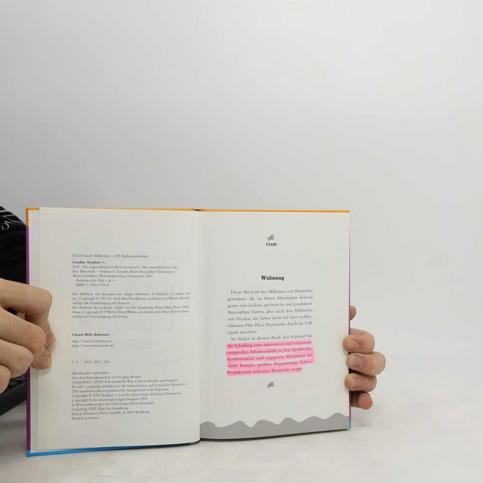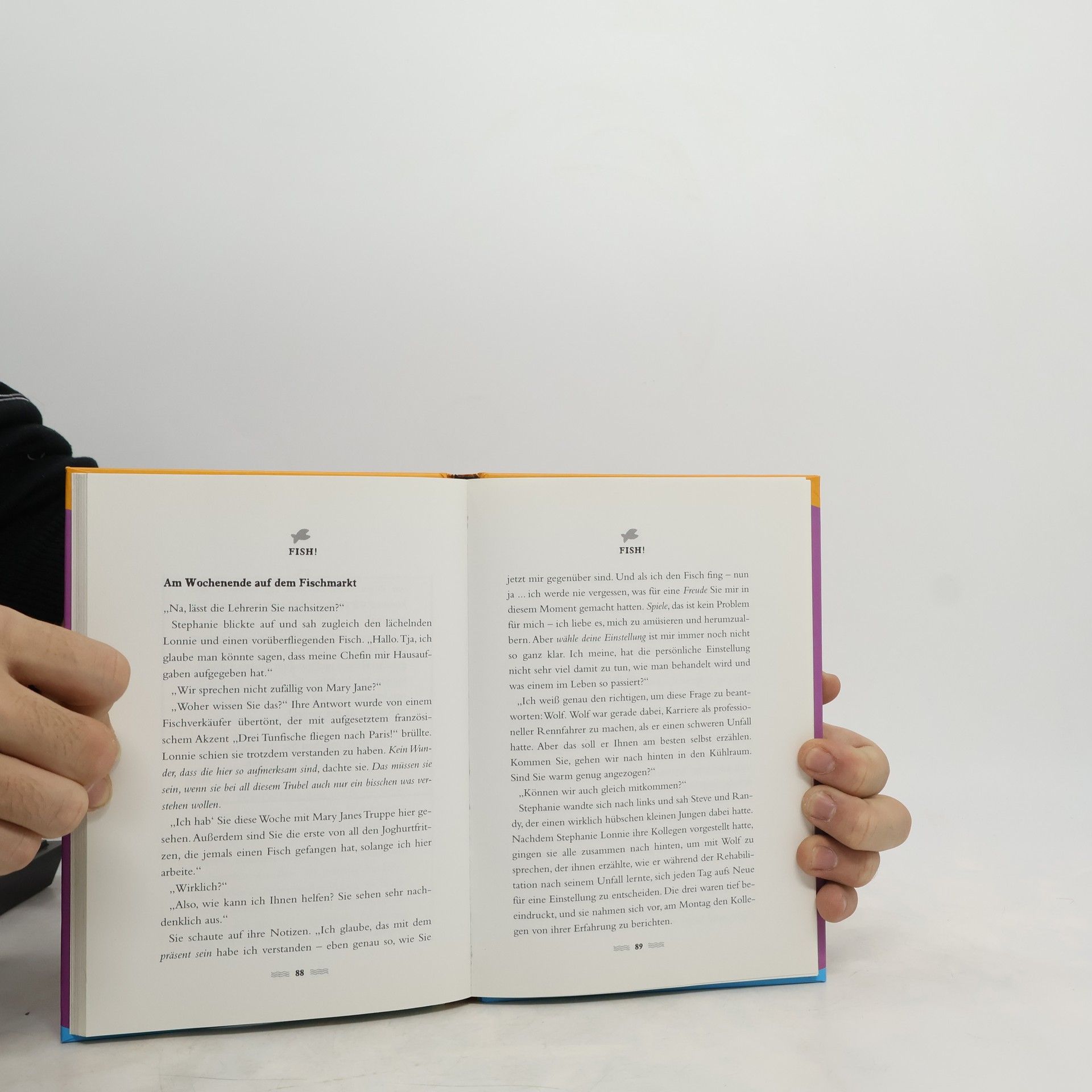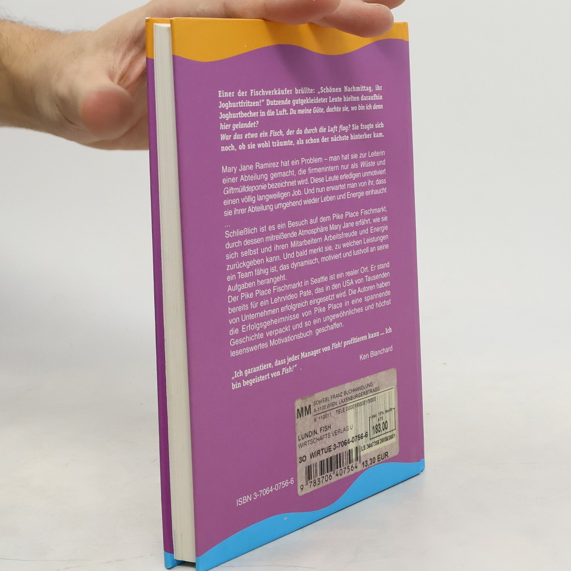 „Fish!™“ verrät das Erfolgsgeheimnis des weltberühmten Pike Place Fischmarkts in Seattle. Die Geschichte zeigt, wie unglaublich wichtig es ist, eine positive Lebenseinstellung zu haben. Das Autorenteam gibt dem Leser vier schlichte Handlungsmaximen mit auf den Weg, die seine Arbeits- und Lebenseinstellung revolutionieren werden. Denn wer beschließt, alles, was er ohnehin tun muss, mit Freude zu tun, motiviert sich selbst und kann ein ganzes Team erfolgreich zu Spitzenleistungen bringen.