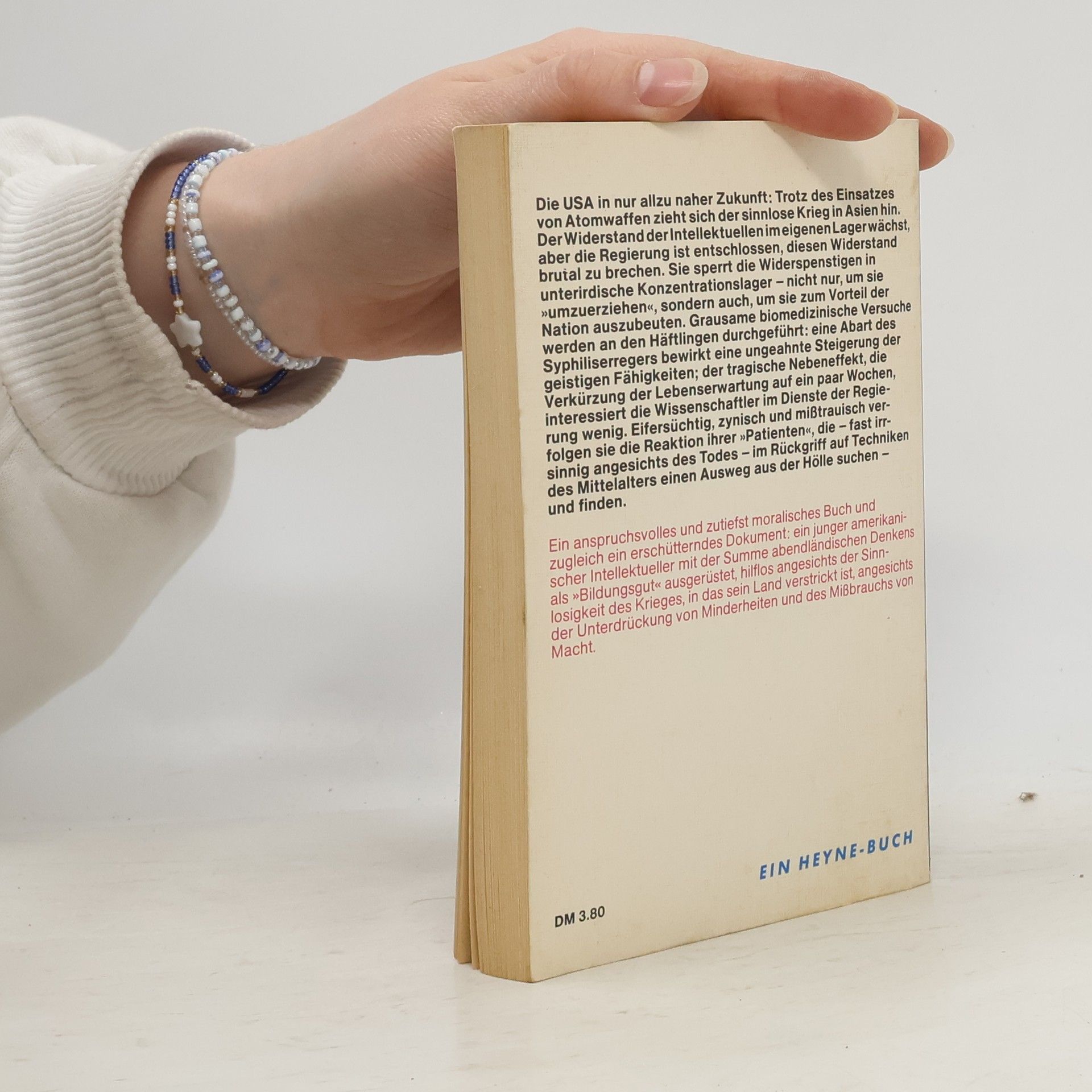 Die USA in nur allzu naher Zukunft: Trotz des Einsatzes von Atomwaffen zieht sich der sinnlose Krieg in Asien hin. Der Widerstand derIntellektuellen im eigenen Lagerwächst, aber die Regierung ist entschlossen, diesen Widerstand brutal zu brechen. Sie sperrt die Widerspenstigen in unterirdische Konzentrationslager – nicht nur, um sie »umzuerziehen«, sondern auch, um sie zum Vorteil der Nation auszubeuten. Grausame biomedizinische Versuche werden an den Häftlingen durchgeführt: eine Abart des Syphiliserregers bewirkt eine ungeahnte Steigerung der geistigen Fähigkeiten