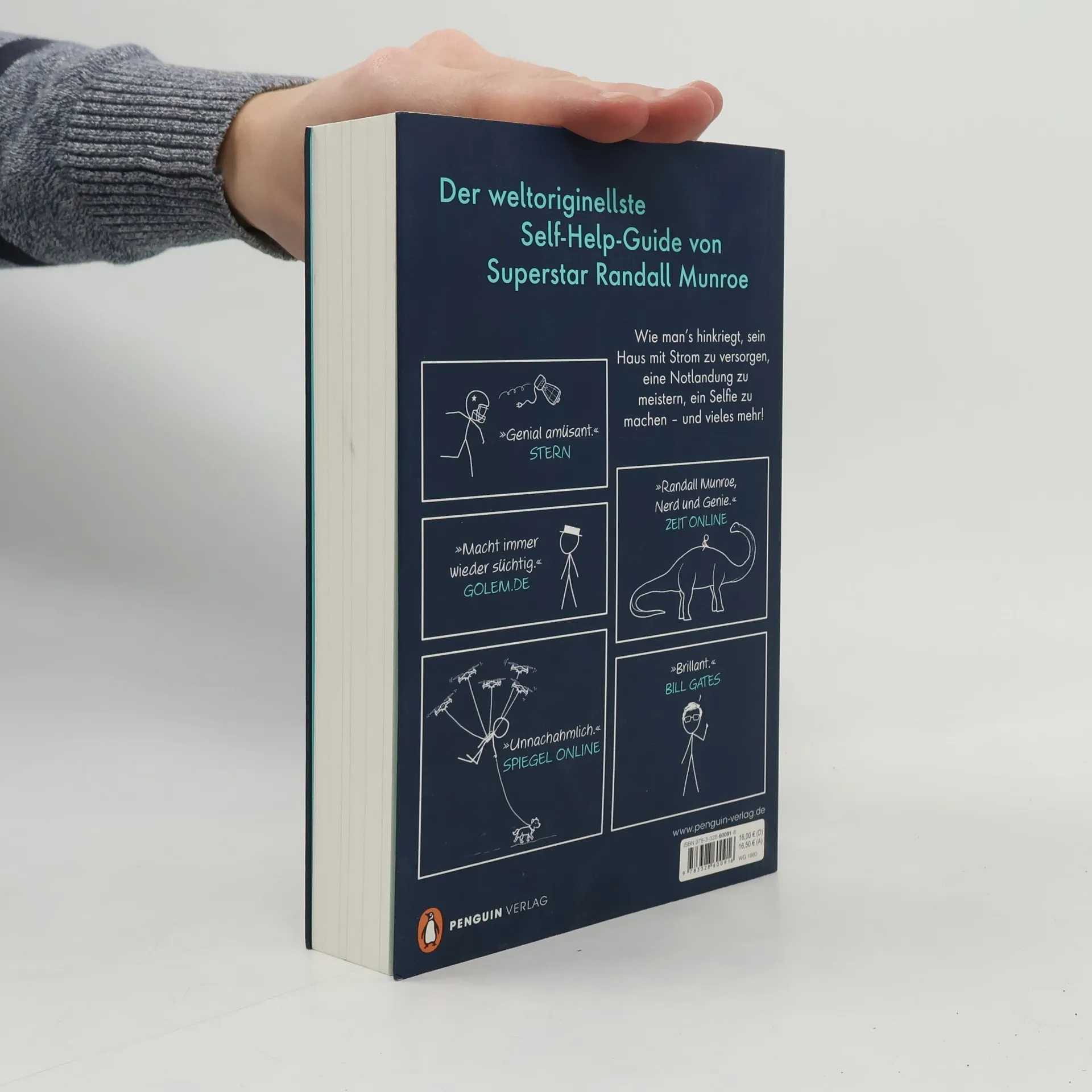 xkcd-Fans aufgepasst: Nach »What if?« jetzt der weltoriginellste »Self-Help-Guide« von Randall Munroe! Für jede Aufgabe, die sich uns stellt, gibt es einen richtigen Weg, einen falschen, und einen, der so offensichtlich absurd ist, dass man ihn niemals in Betracht ziehen würde. »How to« ist eine Anleitung zu diesem dritten Ansatz. Es zeigt uns, wie wir digitale Daten versenden, indem wir USB-Sticks an Zugvögeln befestigen. Wie wir unserem Auto Starthilfe geben, indem wir elf Jahre auf eine Sonneneruption warten. Wie wir herausfinden, ob wir zur Generation der Babyboomer gehören oder ein Kind der Neunziger sind – nämlich, indem wir die Radioaktivität unserer Zähne messen lassen. Und wir erfahren, wie wir endlich pünktlich zu Verabredungen kommen: indem wir mal eben den Mond zerstören. Mit seinen berühmten Strichzeichnungen erklärt Randall Munroe, wie man einfache Probleme auf die allerschwierigste Weise bewältigen kann. Wie schon sein Bestseller »What if?« ist »How to« witzig und horizonterweiternd und hilft uns zu verstehen, welche wissenschaftlichen und technischen Phänomene unserem Alltag zugrunde liegen.