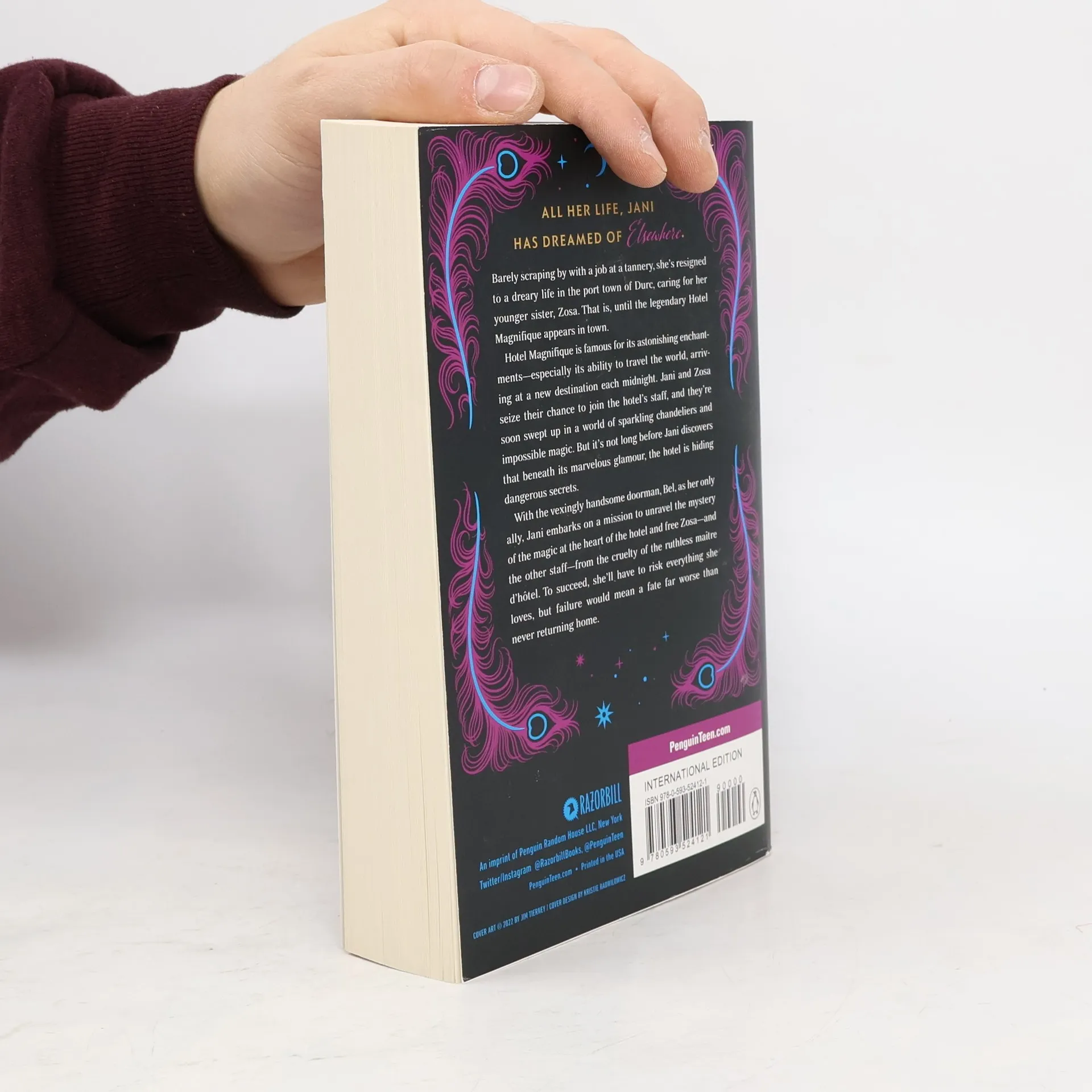 All her life, Jani has dreamed of Elsewhere. Just barely scraping by with her job at a tannery, she's resigned to a dreary life in the port town of Durc, caring for her younger sister Zosa. That is, until the Hotel Magnifique comes to town. The hotel is legendary not only for its whimsical enchantments, but also for its ability to travel-appearing in a different destination every morning. While Jani and Zosa can't afford the exorbitant costs of a guest's stay, they can interview to join the staff, and are soon whisked away on the greatest adventure of their lives. But once inside, Jani quickly discovers their contracts are unbreakable and that beneath the marvelous glamour, the hotel is hiding dangerous secrets. With the vexingly handsome doorman Bel as her only ally, Jani embarks on a mission to unravel the mystery of the magic at the heart of the hotel and free Zosa-and the other staff-from the cruelty of the ruthless maître d'hôtel. To succeed, she'll have to risk everything she loves, but failure would mean a fate far worse than never returning home
