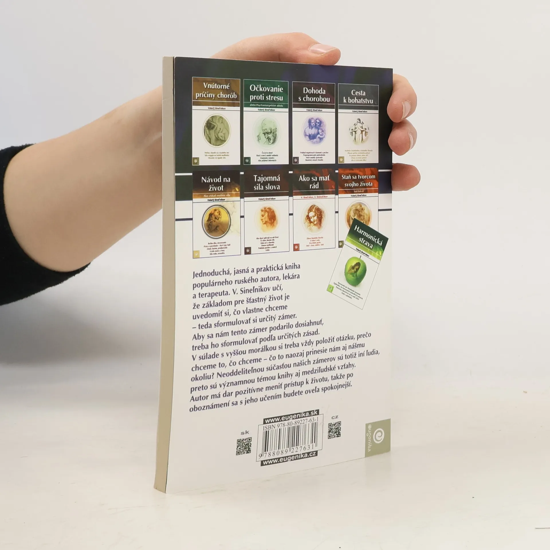 Jednoduchá, jasná a praktická kniha populárneho ruského autora, lekára a terapeuta. V. Sineľnikov učí, že základom pre šťastný život je uvedomiť si, čo vlastne chceme – teda sformulovať si určitý zámer. Aby sa nám tento zámer podarilo dosiahnuť, treba ho sformulovať podľa určitýchzásad. V súlade s vyššou morálkou si treba vždy položiť otázku, prečo chceme to, čo chceme – čo to naozaj prinesie nám aj nášmu okoliu? Neoddeliteľnou súčasťou našich zámerov sú totiž iní ľudia, preto sú významnou témou knihy aj medziľudské vzťahy. Autor má dar pozitívne meniť prístup k životu, takže po oboznámení sa s jeho učením budete oveľa spokojnejší.