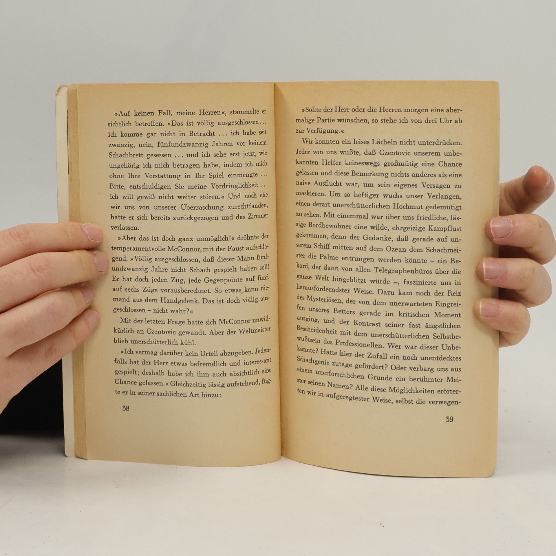 Šachová novela je literárnou perlou Zweigovej novelistickej a poviedkovej tvorby. Autor v diele bravúrne rozvíja príbeh, ktorý vyvrcholí konfrontáciou dvoch šachových majstrov počas plavby parníkom z New Yorku do Buenos Aires. Krátko po vyplávaní lode vyzve zopár šachových nadšencov na súboj jedného z prominentných pasažierov, šachového veľmajstra Mirka Czentovica. Prvú partiu vyhrá Czentovic a porazení žiadajú odvetu. Spočiatku je veľmajster v prevahe, vtom sa však k hráčom pripojí nenápadný muž, poradí im niekoľko skvelých ťahov, a partia sa skončí remízou. Kto je tento doktor B., záhadný brilantný šachista? Ako sa súboj skončí?