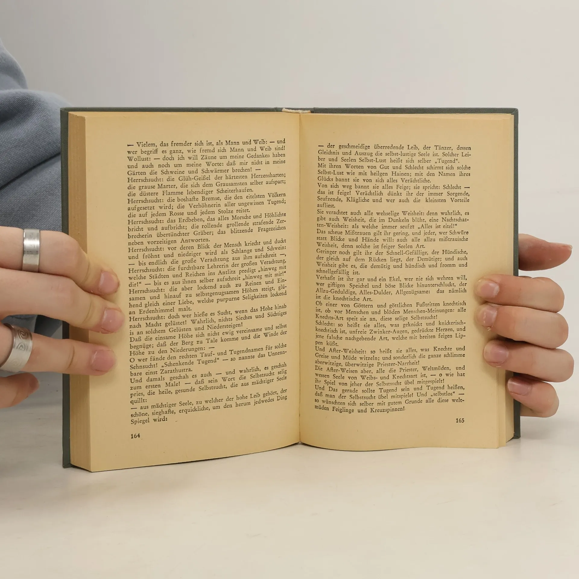 Zarathustra, inspiriert von einem persischen Religionsstifter des 6. Jahrhunderts v. Chr., kämpft gegen den Nihilismus, der aus der Erkenntnis "Gott ist tot" resultiert. Er strebt an, einen neuen Glauben zu begründen: den Glauben an den 'Übermenschen'. Während schwache Menschen den Geboten des toten Gottes folgen, sucht der Übermensch sein Heil in der Ausrichtung auf das Irdische, auf Macht, Vitalität und Stärke, um der Welt einen neuen Sinn zu geben. Der Übermensch hat die Fähigkeit, alte moralische Werte abzuschaffen und in völliger Freiheit das Leben zu verbessern. Das Werk besteht hauptsächlich aus den Reden Zarathustras, der sich mit 30 Jahren in eine Höhle zurückzieht, um seine Lehre zu entwickeln und dem Nihilismus entgegenzuwirken. Das Buch gliedert sich in vier Teile: In den ersten beiden verkündet Zarathustra die Lehre vom Übermenschen. Im dritten Teil formuliert er den zentralen Gedanken seiner Philosophie: die ewige Wiederkehr des Gleichen und deren Sinnlosigkeit, was ihn gegen einen übergeordneten Sinn und ein Ziel der Geschichte richtet. Trotz des nihilistischen Gedankens erkennt er im Kreislauf des Lebens, auch im Leiden, den Wert des Daseins. Im letzten Teil wird Zarathustra um Hilfe in der durch den Tod Gottes verursachten Verzweiflung gebeten. Sein Wissen um die Wiederkehr des Gleichen ermöglicht es ihm, die christlichen Werte zu verwerfen und dem Ideal des Übermenschen zu entsprechen. Nietzsches ständige T