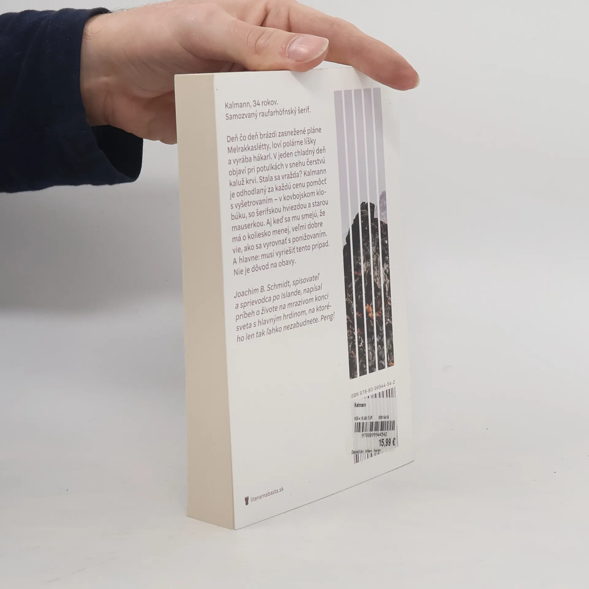 Kalmann, 34 rokov. Samozvaný raufarhöfnský šerif. Deň čo deň brázdi zasnežené pláne Melrakkaslétty, loví polárne líšky a vyrába hákarl. V jeden chladný deň objaví pri potulkách v snehu čerstvú kaluž krvi. Stala sa vražda? Kalmann je odhodlaný za každú cenu pomôcť s vyšetrovaním - v kovbojskom klobúku, so šerifskou hviezdou a starou mauserkou. Aj keď sa mu smejú, že má o koliesko menej, veľmi dobre vie, ako sa vyrovnať s ponižovaním. A hlavne: musí vyriešiť tento prípad. Nie je dôvod na obavy. Joachim B. Schmidt, spisovateľ a sprievodca po Islande, napísal príbeh o živote na mrazivom konci sveta s hlavným hrdinom, na ktorého len tak ľahko nezabudnete. Peng!