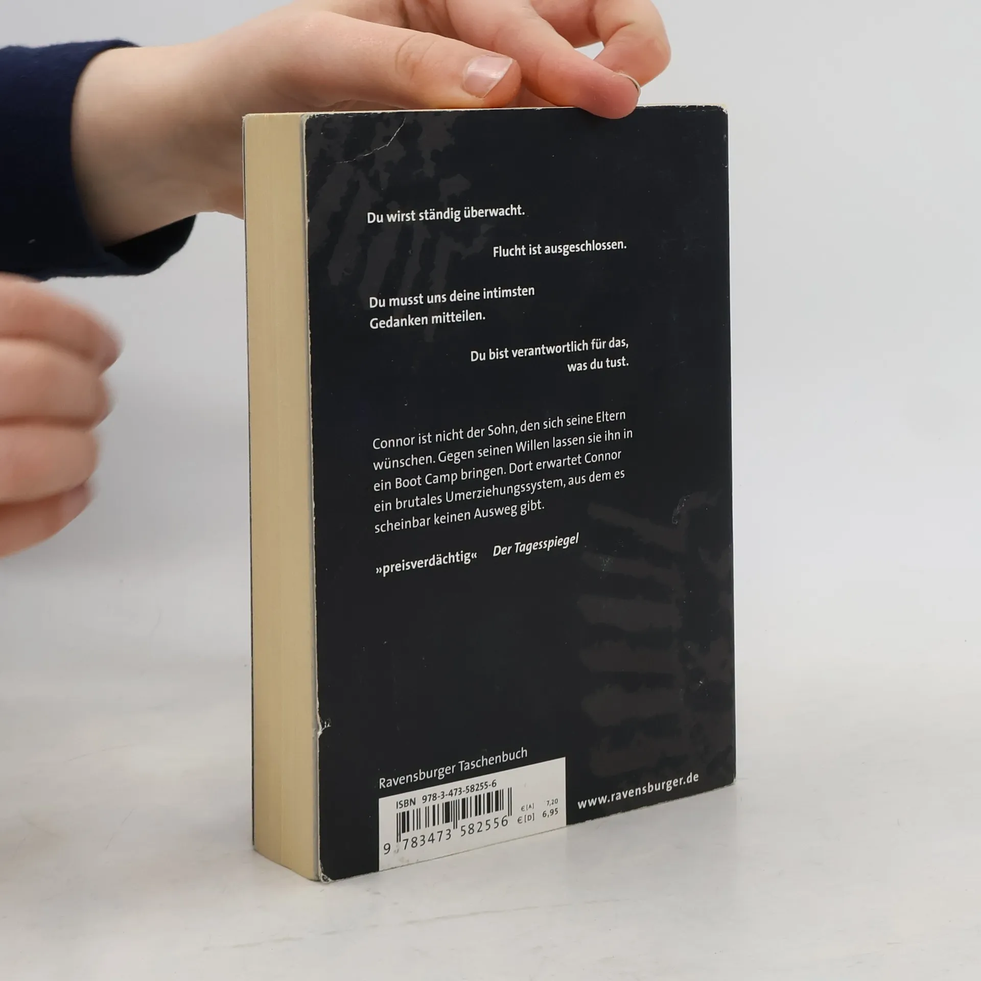 Connors Eltern sind sich einig: Das Verhalten ihres Sohnes ist gesellschaftlich inakzeptabel. Gegen seinen Willen wird der Sechzehnjährige in ein Boot Camp gebracht. Dort erwartet ihn ein brutales Umerziehungssystem. Es gibt nur einen Ausweg: Flucht. Wichtig für den Schulunterricht: Seitenzählung unverändert! Mitten in der Nacht wird der sechzehnjährige Connor entführt und in ein Auto gezerrt. Es stellt sich schnell heraus, dass diese Aktion von seinen Eltern in Auftrag gegeben worden ist, um ihn, den unangepassten Jugendlichen, gegen seinen Willen in ein Boot Camp zu verfrachten. Da Connor eine Beziehung zu einer zehn Jahre älteren Frau führt und das nicht den Vorstellungen seiner Eltern entspricht, haben sie ihn für viel Geld in „Lake Harmony“, einem Umerziehungslager für schwer erziehbare Teenager, angemeldet. Dort soll er auf den vermeintlich richtigen Weg geführt werden. Connor erwartet im Boot Camp die Hölle. Körperliche Züchtigung, Isolierstation und verbale Demütigungen gehören zum Alltag. Schließlich findet Connor in Pauly und Sarah zwei Gleichgesinnte und gemeinsam gelingt es ihnen, aus dem Boot Camp zu fliehen. Doch zwei Aufseher sind den Freunden dicht auf den Fersen. Und plötzlich steht Connor vor einer schweren Entscheidung …