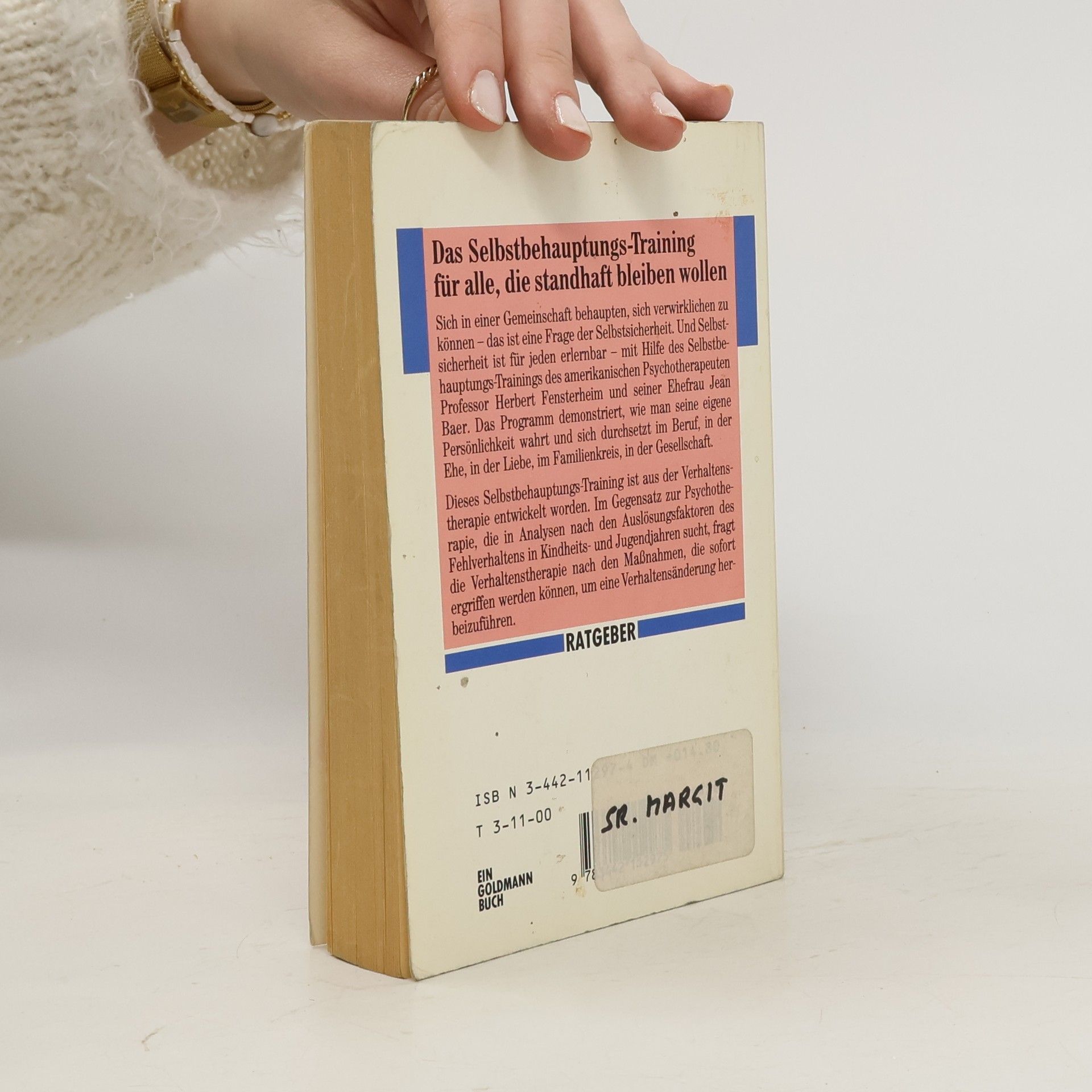 Seit Jahrzenten erfolgreich: das Standardwerk zum Thema Selbstbewusstsein Selbstsicherheit kann man lernen – mit dem Training des amerikanischen Psychotherapeuten Professor Herbert Fensterheim und der Journalistin Jean Baer. Das Programm, mit dem sie schon Millionen Menschen geholfen haben, demonstriert, wie man das Vertrauen in die eigene Person stärkt und sich durchsetzt – im Beruf, in der Liebe, im Familienkreis, in der Gesellschaft.