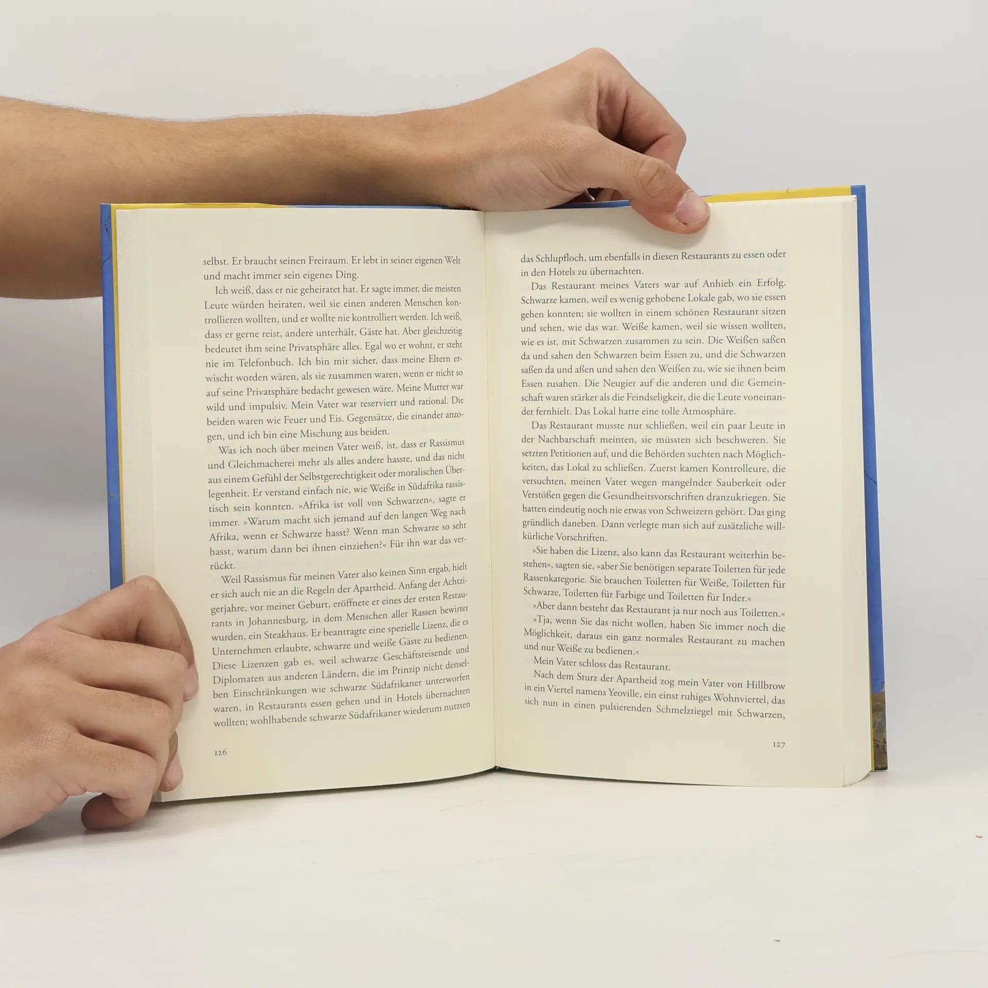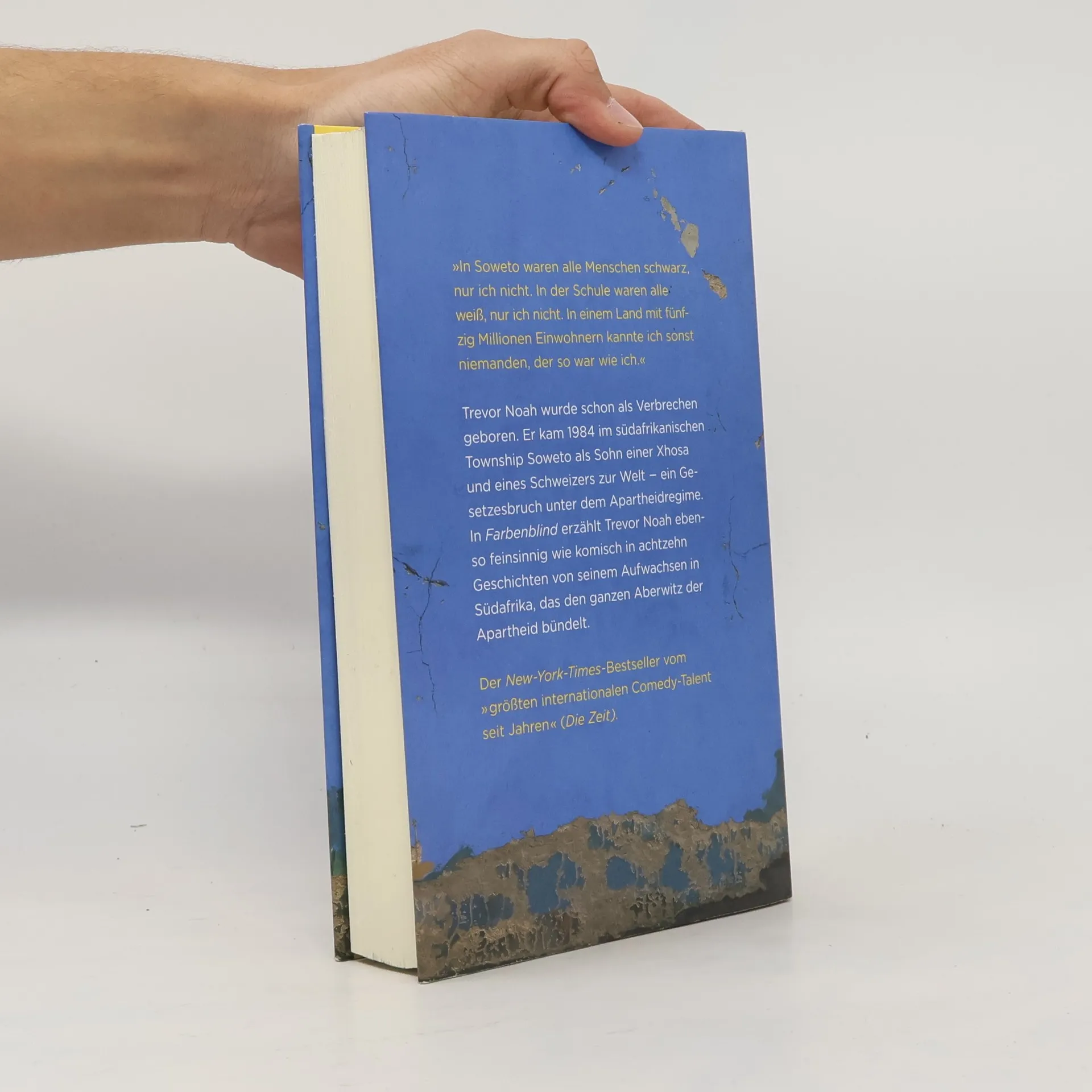Trevor Noah kam 1984 im Township Soweto als Sohn einer Xhosa und eines Schweizers zur Welt. Zu einer Zeit, da das südafrikanische Apartheidsregime „gemischtrassige“ Beziehungen weiterhin unter Strafe stellte. Als Kind, das es nicht geben durfte, erlebte er Armut und systematischen Rassismus, aber auch die mutige Auflehnung seiner „farbenblinden“ Eltern, die einfallsreich versuchten, Trennungen zwischen Ethnien und Geschlechtern zu überwinden. Heute ist er ein international gefeierter Comedian, der die legendäre „The Daily Show“ in den USA hostete und weltweit – ob Sydney, Dubai, Toronto, San Francisco oder Berlin – in ausverkauften Sälen auftritt.In „Farbenblind“ erzählt Trevor Noah ebenso feinsinnig wie komisch in achtzehn Geschichten von seinem Aufwachsen in Südafrika, das den ganzen Aberwitz der Apartheid bündelt: warum ihn seine Mutter aus einem fahrenden Minibus warf, um Gottes Willen zu erfüllen, welche Musik er für einen tanzenden Hitler aufzulegen pflegte, um sein erstes Geld zu verdienen, und wie ihn eine Überwachungskamera, die nicht einmal zwischen Schwarz und Weiß unterscheiden konnte, vor dem Gefängnis bewahrte.