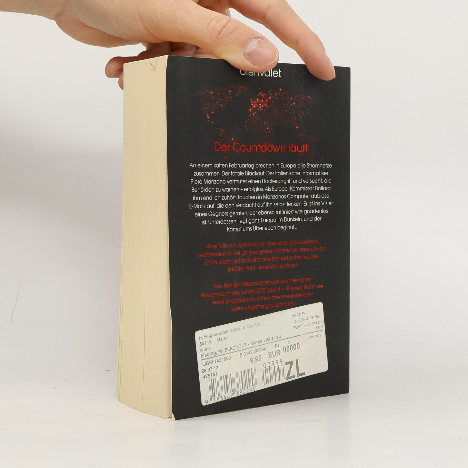 „800 Thriller-Seiten vom Feinsten, auf denen Elsberg es versteht, ein erschreckendes und erschreckend realistisches Bild eines Blackouts zu zeichnen.“ ntv. de An einem kalten Februartag brechen in Europa alle Stromnetze zusammen. Der totale Blackout. Der italienische Informatiker Piero Manzano vermutet einen Hackerangriff und versucht, die Behörden zu warnen – erfolglos. Als Europol-Kommissar Bollard ihm endlich zuhört, tauchen in Manzanos Computer dubiose Emails auf, die den Verdacht auf ihn selbst lenken. Er ist ins Visier eines Gegners geraten, der ebenso raffiniert wie gnadenlos ist. Unterdessen liegt ganz Europa im Dunkeln, und der Kampf ums Überleben beginnt … Von Bild der Wissenschaft zum spannendsten Wissensbuch des Jahres 2012 gekürt — »Elsberg flicht vier Handlungsfäden zu einem atemberaubenden Spannungsstrang zusammen.« Lesen Sie auch den aktuellen Thriller von Marc Elsberg: °C - Celsius! Ein Klimathriller, der alles auf den Kopf stellt. Außerdem erhältlich: BLACKOUT als Premiumausgabe – mit einer exklusiven Kurzgeschichte von Marc Elsberg und weiteren Extras! ZERO: Sie wissen, was du tust HELIX: Sie werden uns ersetzen GIER: Wie weit würdest du gehen? Der Fall des Präsidenten