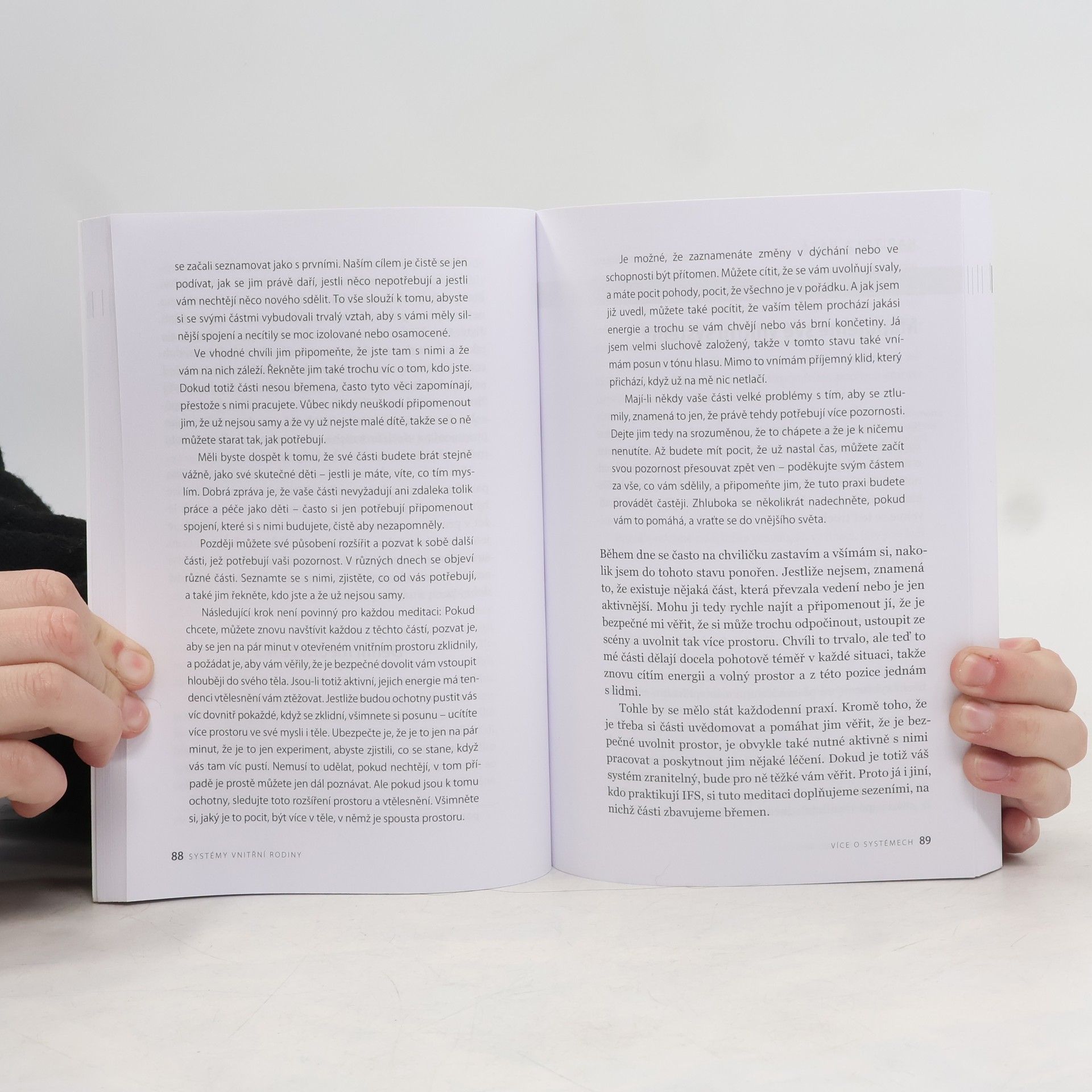 Kniha je úvodem do tzv. systémů vnitřní rodiny (Internal Family Systems, IFS), který dnes patří mezi uznávané psychoterapeutické přístupy. IFS zpochybňuje představu jednotné identity a zdůrazňuje existenci různých části v jednom člověku (např. vnitřní dítě, vnitřní kritik, vnitřní sabotér). Tyto části jsou na sobě do jisté míry nezávislé a záleží na koherenci našeho já, jestli z nich dovede utvořit dostatečně vyvážený a zvládnutý celek. Jednou ze základních autorových myšlenek je, že tyto části nejsou samy o sobě nikdy patologické, i když mohou přispívat k jedincovu narušení. Mnoho z nich se vyvinulo v průběhu jedincova dětství na jeho obranu, a když je zbavíme jejich zátěže, mohou se opět stát tím, čím v zásadě jsou – našimi pomocníky. IFS je vhodným přístupem např. pro práci s traumaty, závislostmi, depresí či úzkostí. Kniha z pera samotného zakladatele tohoto směru uvádí základní postupy při práci s IFS, ukázky z terapeutických rozhovorů i řadu cvičení.