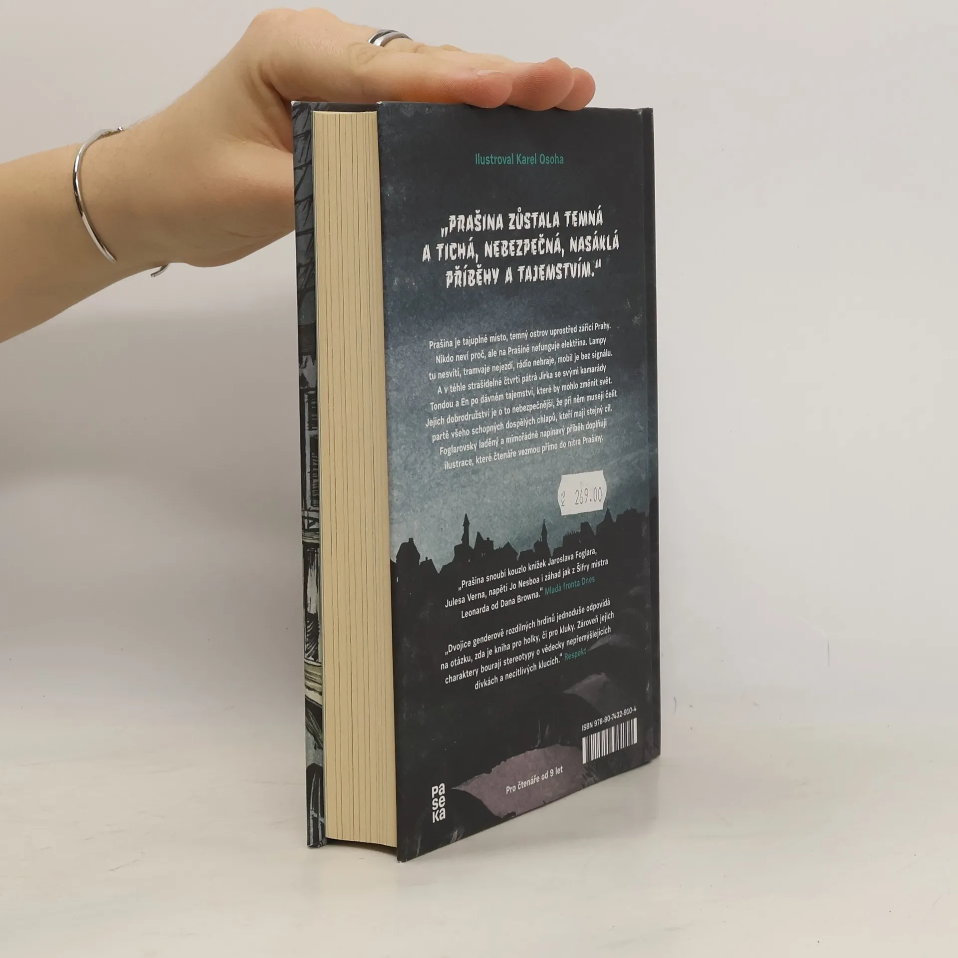 Prašina je tajuplné místo, temný ostrov uprostřed zářící Prahy. Nikdo neví proč, ale na Prašině nefunguje elektřina. Lampy tu nesvítí, tramvaje nejezdí, rádio nehraje, mobil je bez signálu. A v téhle strašidelné čtvrti pátrá Jirka se svými kamarády Tondou a En po dávném tajemství, které by mohlo změnit svět. Jejich dobrodružství je o to nebezpečnější, že při něm musejí čelit partě všeho schopných dospělých chlapů, kteří mají stejný cíl. Foglarovsky laděný a mimořádně napínavý příběh doplňují ilustrace, které čtenáře vezmou přímo do nitra Prašiny.