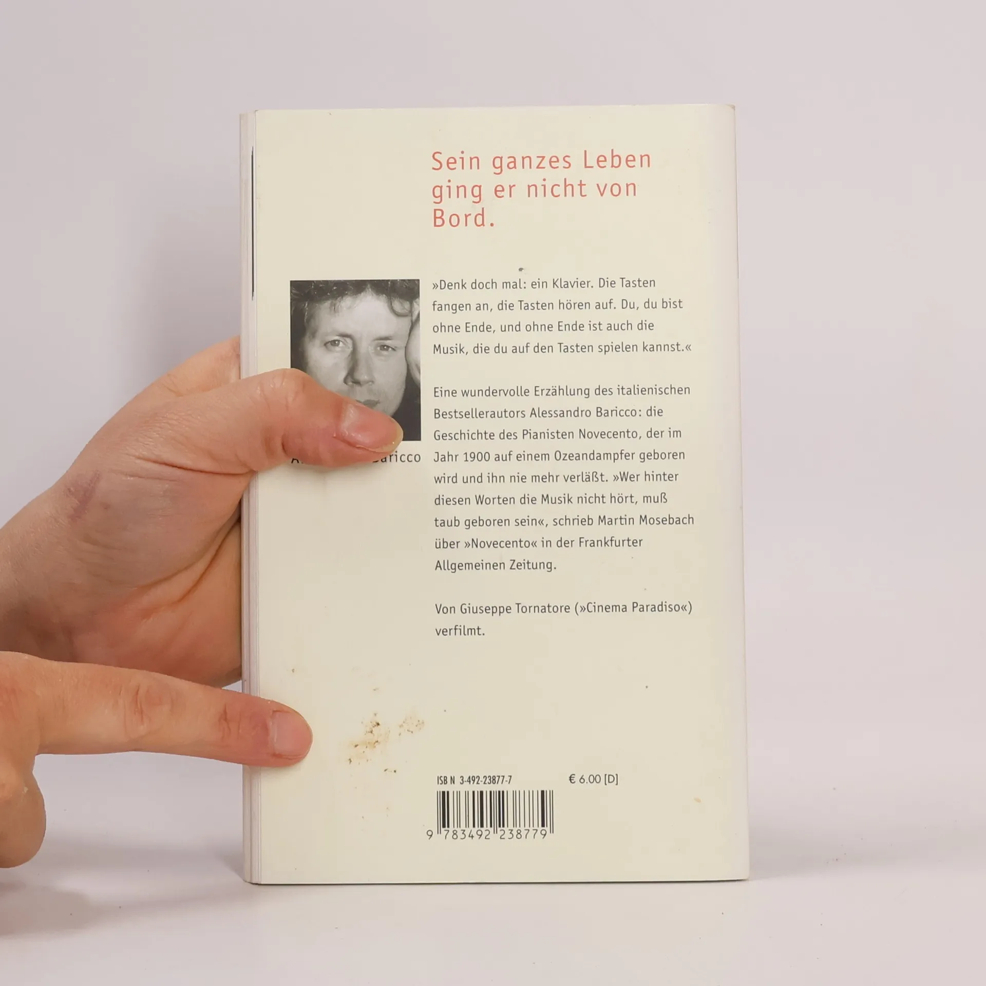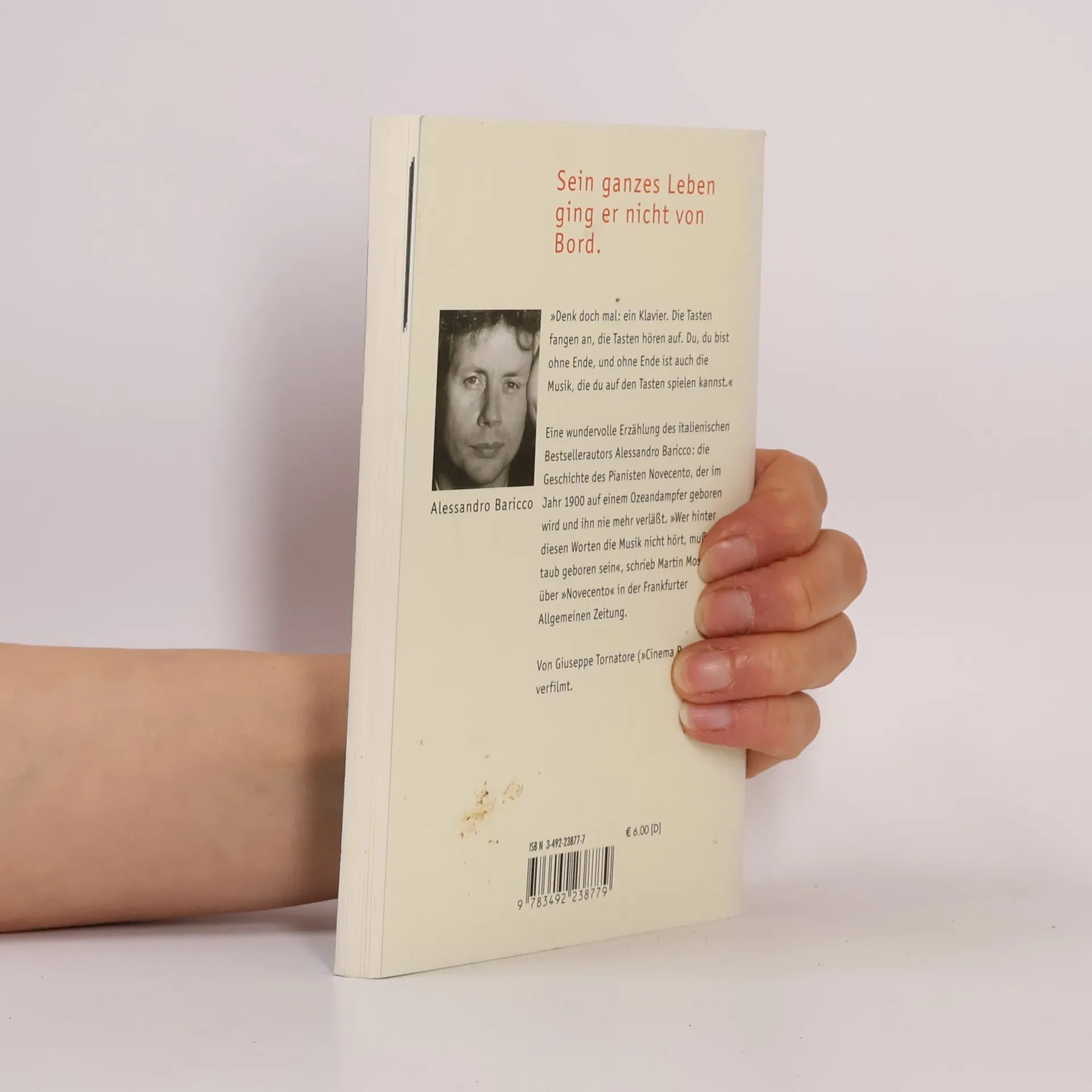 Der Matrose Danny Boodmann entdeckt im Ballsaal eines Luxusdampfers ein ausgesetztes Baby und tauft es auf den Namen Danny Boodmann T. D. Lemon Novecento. Von diesem Zeitpunkt an übernimmt er die Verantwortung für den Kleinen, der sein Leben lang auf dem Schiff, der „Virginian“, bleibt. Novecento wird Pianist und verzaubert die Gäste mit einzigartigen Klängen im Ballsaal sowie mit seinem eigenen Jazz und Ragtime für die Passagiere der 3. Klasse. Seine Musik übt einen unerklärlichen Sog auf alle Zuhörer aus. Diese Erzählung, ursprünglich als Theaterstück für einen Schauspieler konzipiert, lässt sich schwer einordnen. Vierzig Jahre vergehen, während Novecento nie das Schiff verlässt. Seine Reise im geschützten Bauch des Schiffes wird zur Allegorie für Raum, Zeit und das Jahrhundert. Die betörende Musik und die tiefgründigen Themen erinnern an Werke wie „Schlafes Bruder“ oder Thomas Manns „Zauberberg“. Dennoch gibt es Fragen zur Authentizität der Sprache, die an Bronxgangster erinnert. Begleiten Sie Novecento auf seiner letzten, traurigen Fahrt der „Virginian“ und entdecken Sie, wer an Bord ist.
