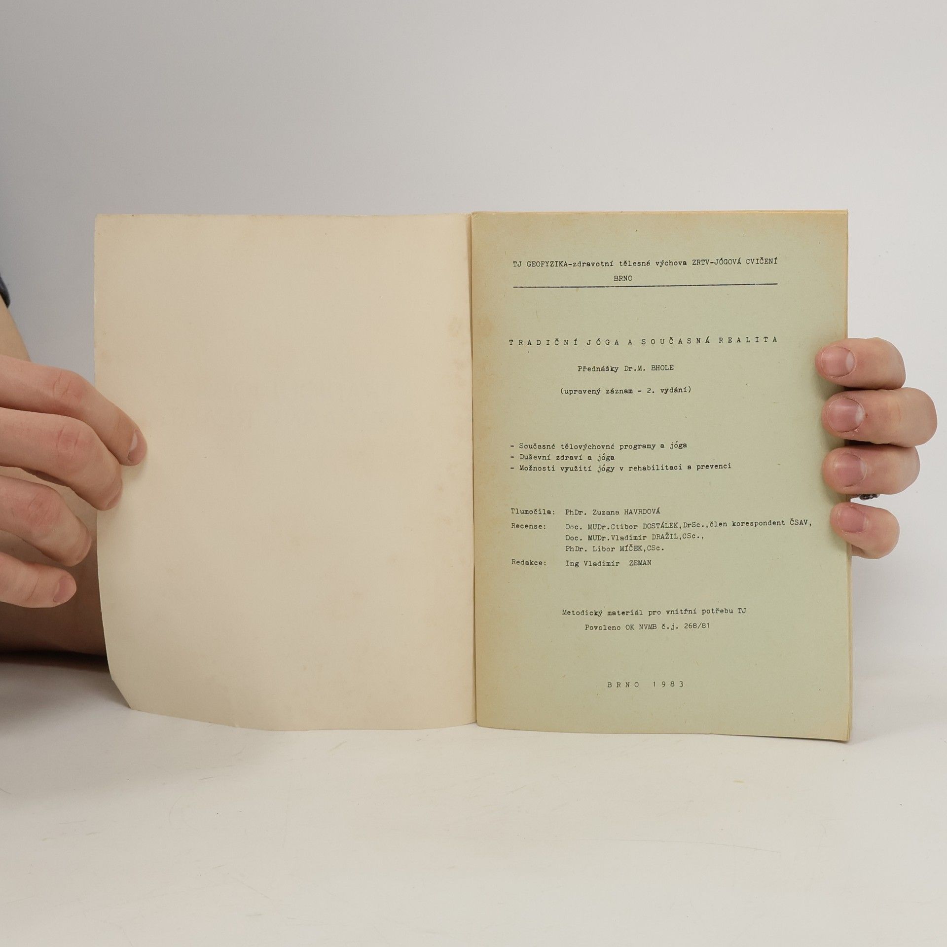 Tradiční jóga a současná realita. Přednášky Dr.M. Bhole, Zuzana Havrdová
